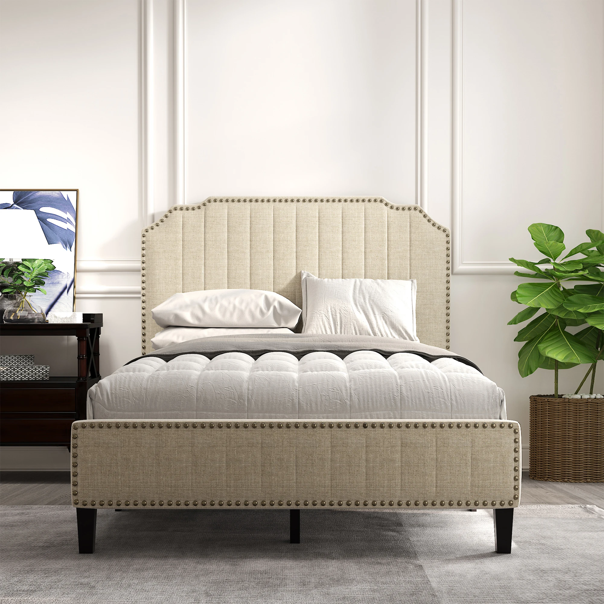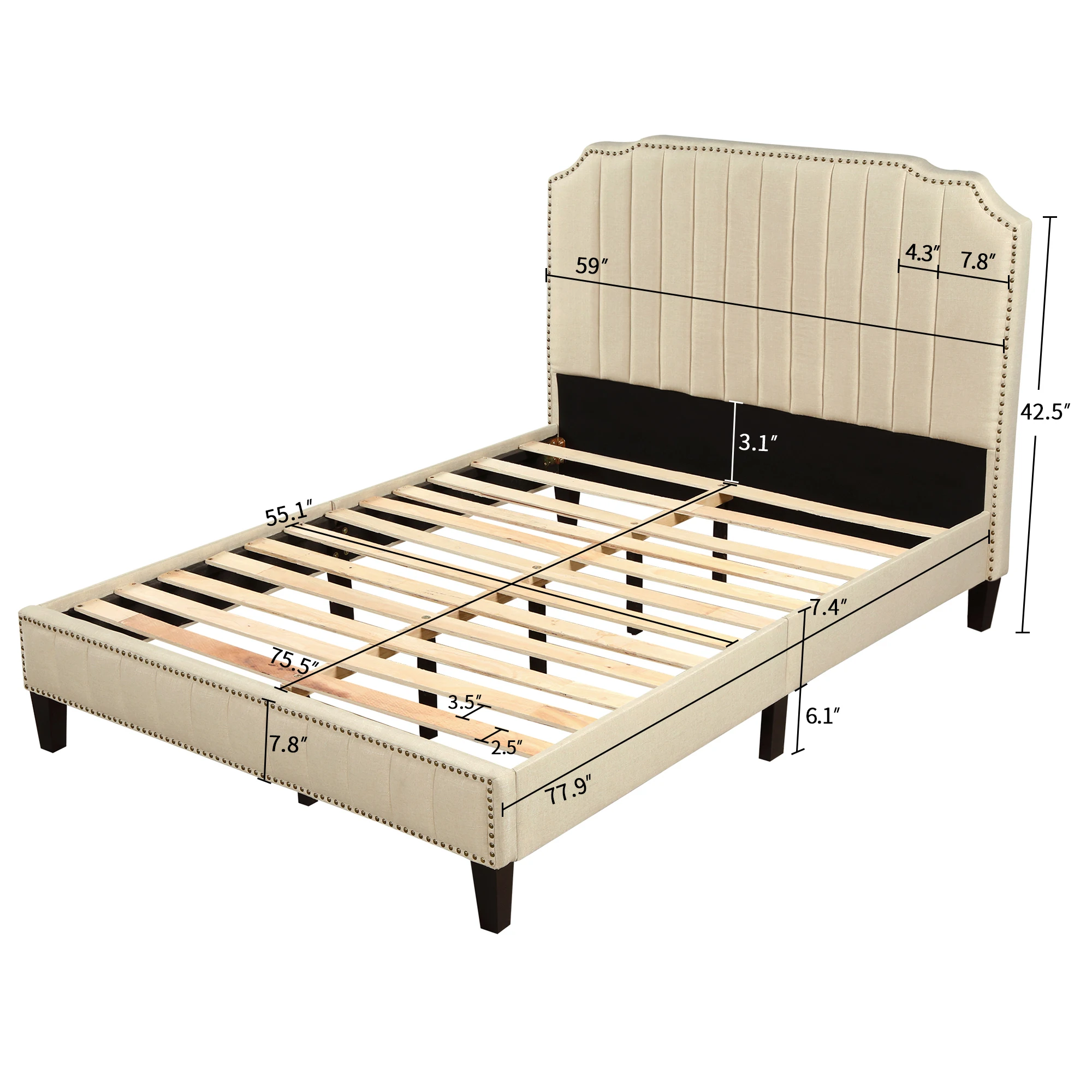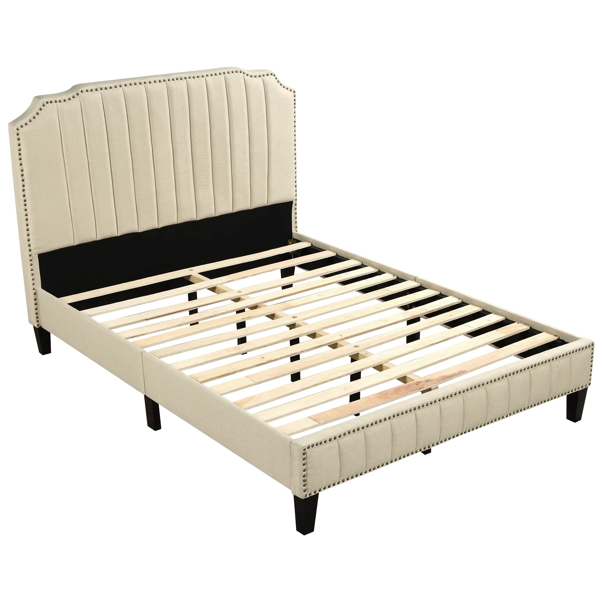 Product Name: الشمال هيكل سرير كتان منحني منجد سرير بلا أرجل مع نايلهيد زخرفة خشب متين لغرفة النوم أثاث منزلي أثاث عصري