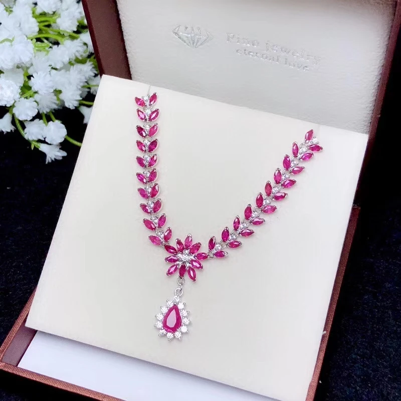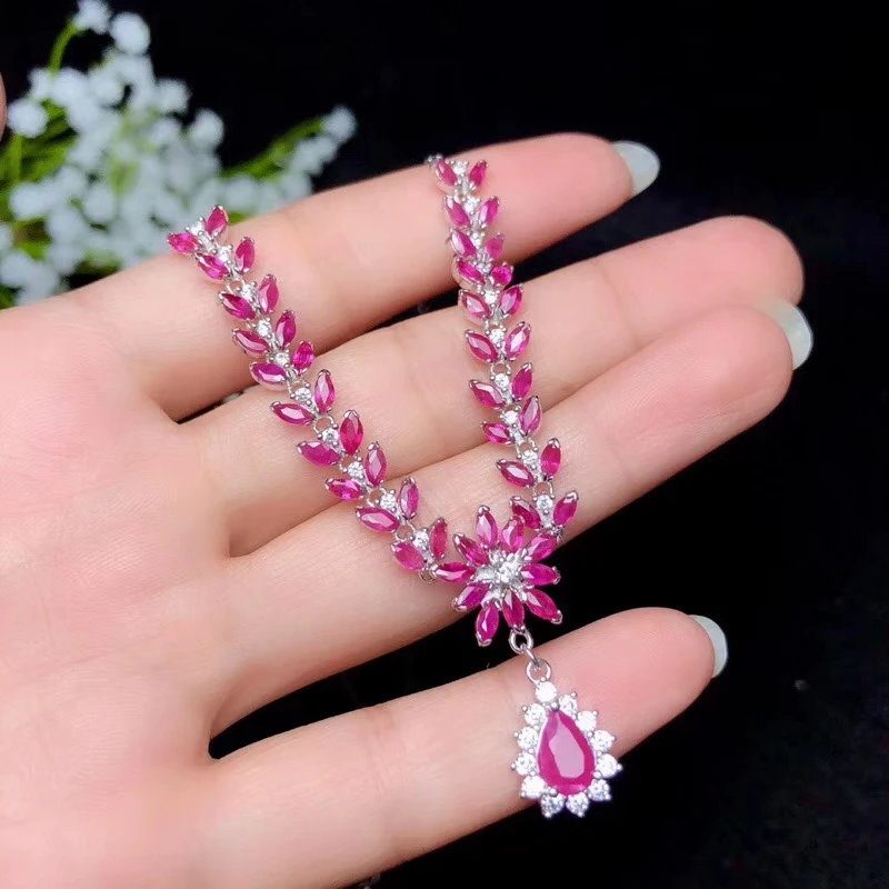 Special Offer KJJEAXCMY غرامة مجوهرات 925 فضة مطعمة الطبيعية روبي قلادة الإناث قلادة أنيقة اختبار الدعم Discount 22% Today!
