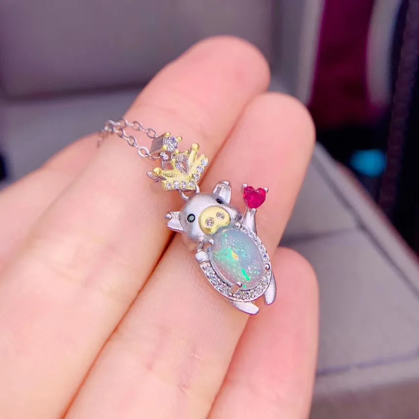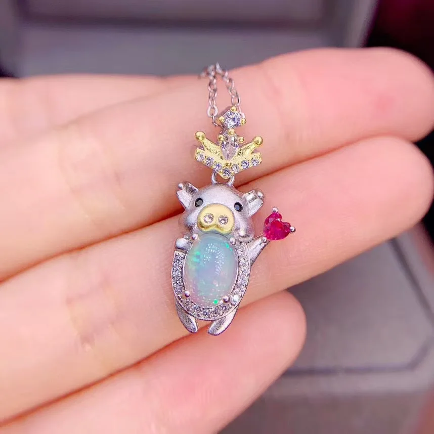 Special Offer الحب خنزير نمط جميل أوبال قلادة قلادة 100% الطبيعية الوردي العقيق المعلقات 925 الاسترليني مجوهرات فضية Discount 25% Today!