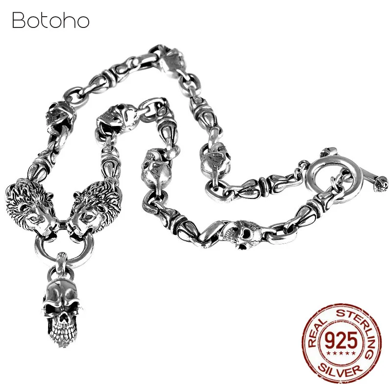 Special Offer قلادة مصنوعة يدويا من أسد اللون الفضي سلسلة سميكة وقلادة جمجمة 100% 925 فضة استرليني اللون قلادة قلادة مجوهرات Discount 45% Today!