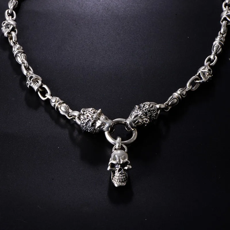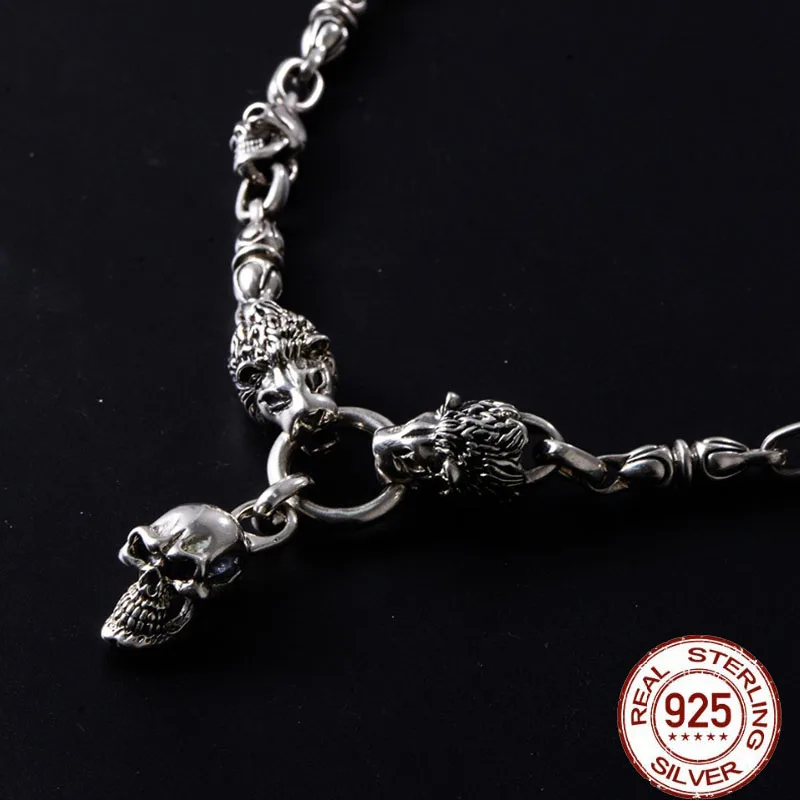 Product Name: قلادة مصنوعة يدويا من أسد اللون الفضي سلسلة سميكة وقلادة جمجمة 100% 925 فضة استرليني اللون قلادة قلادة مجوهرات