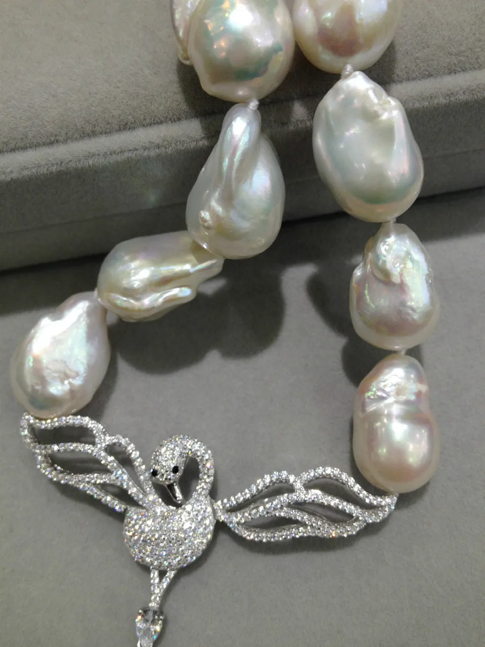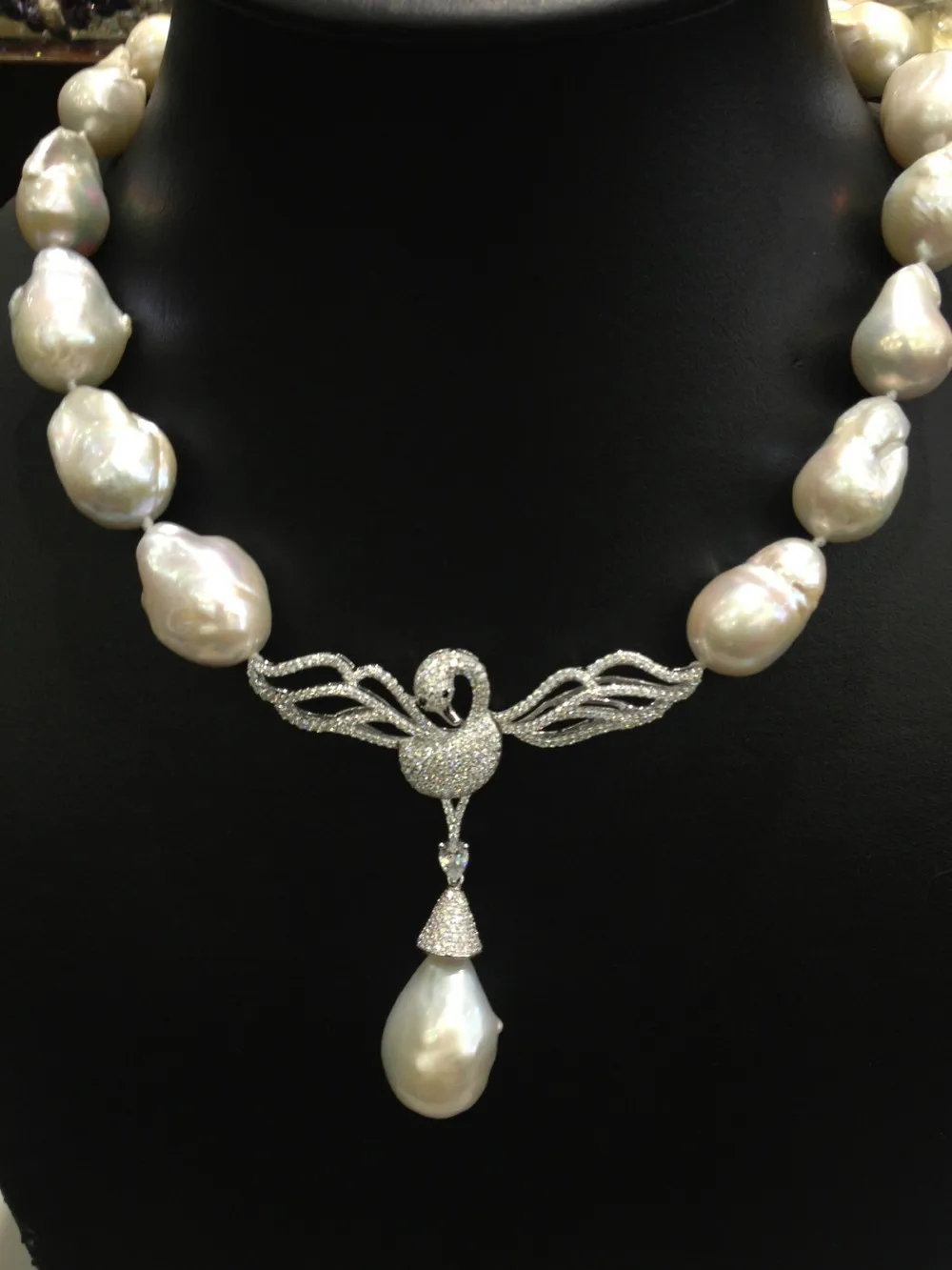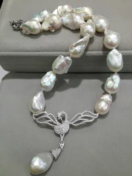 Product Name: الباروك 100% ريال لؤلؤ مستزرع في الماء العذب قلادة قلادة ضخمة من اللؤلؤ مع سوان قلادة 925 فضة