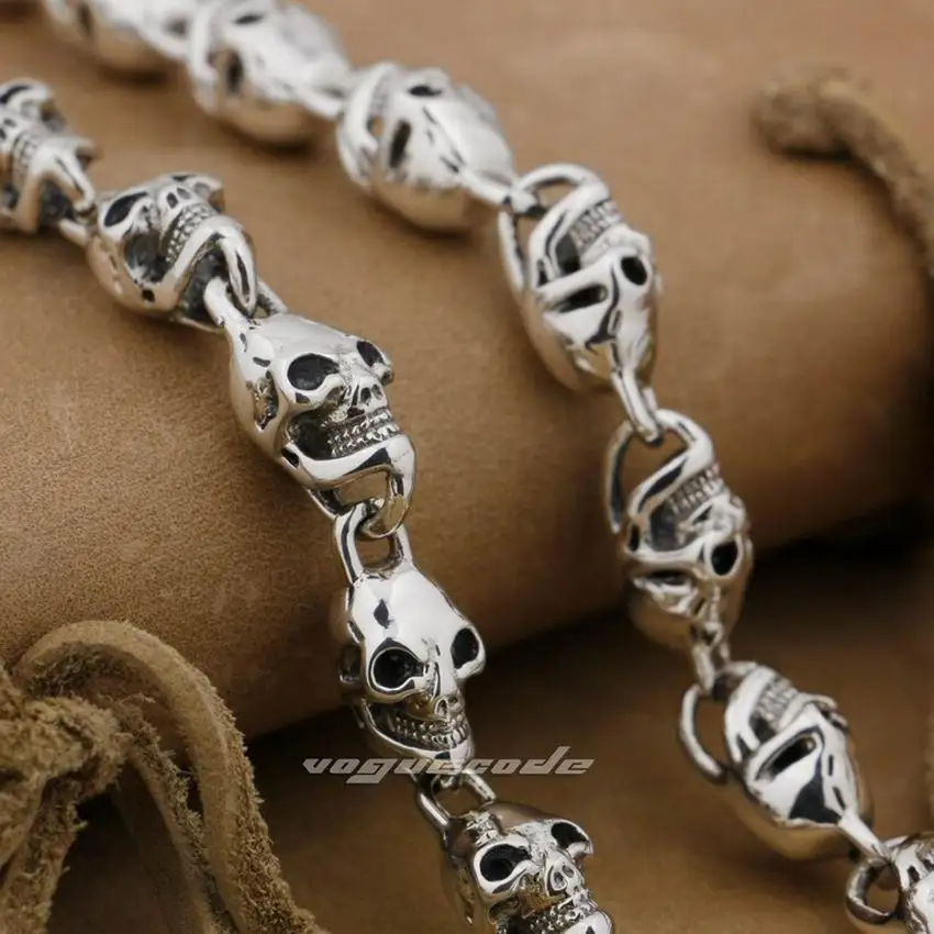 Product Name: 18 "إلى 36" 925 فضة الجماجم رجل السائق الروك الشرير قلادة 8W004N