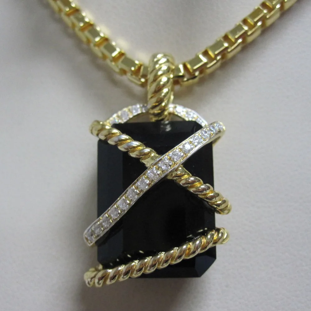 Special Offer فضة مطلية بالذهب 20x15 مللي متر مورغانيتي غلاف للكبل قلادة الصلبة 925 فضة أسود الجزع المرأة محسن دون سلسلة Discount 0% Today!