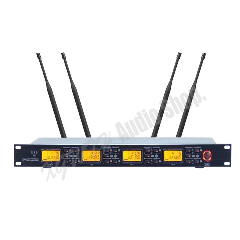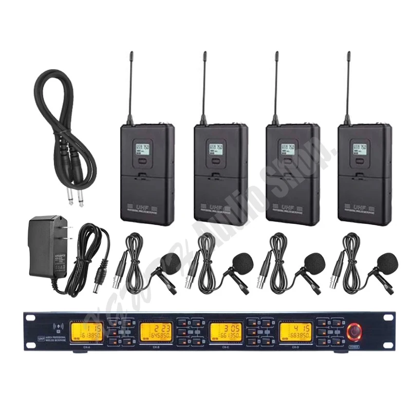 Product Name: نظام مكبر صوت لا سلكي ذو تردد فوق العالي 4 Lavalier التلبيب طوق كليب على سماعة Mic 1 اللاسلكية استقبال كابل شاشة الكريستال السائل ل الكاريوكي