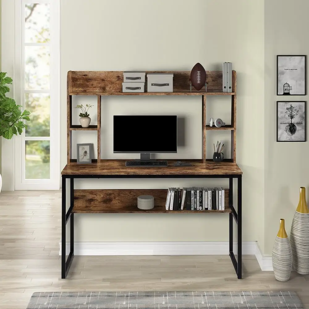 Product Name: مكتب لكمبيوتر المكتب المنزلي مع قفص التخزين وخزانة الكتب المزدوجة
