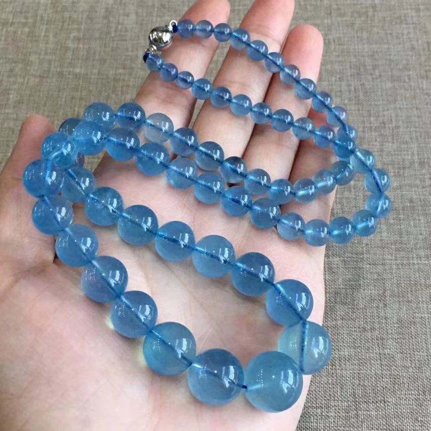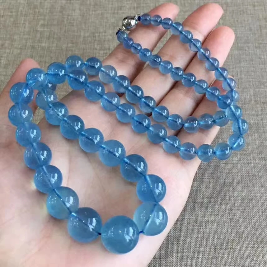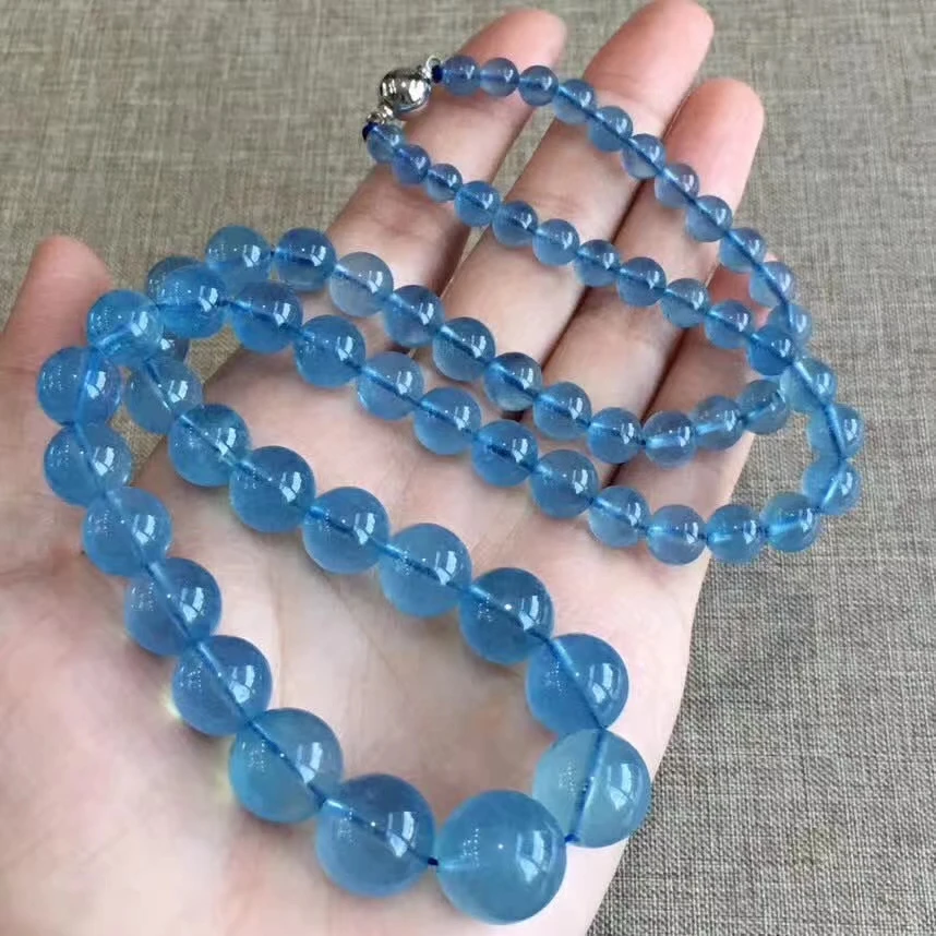 Special Offer الطبيعية الأزرق الزبرجد قلادة واضحة واضحة مستديرة الخرز امرأة 5.6-14.7 مللي متر السحر الكريستال امرأة أحجار استشفاء AAAAAA Discount 30% Today!