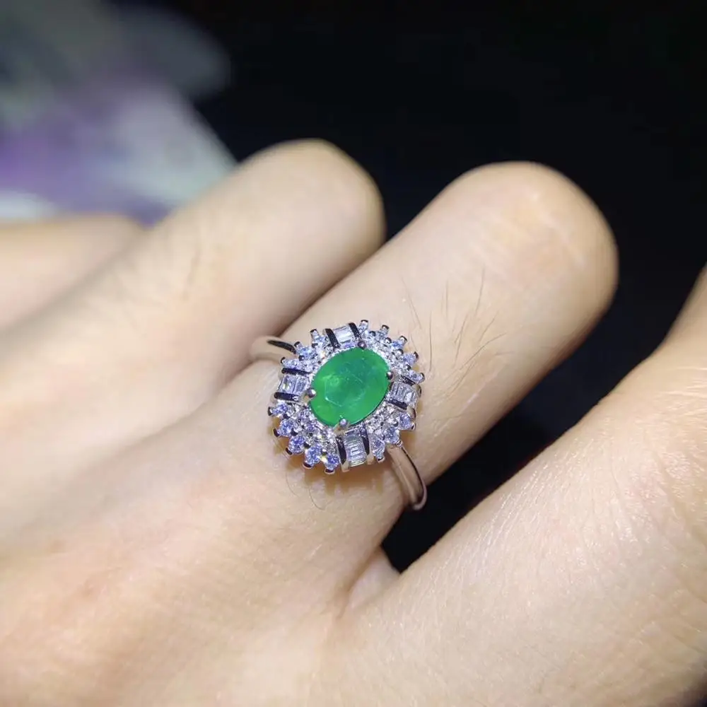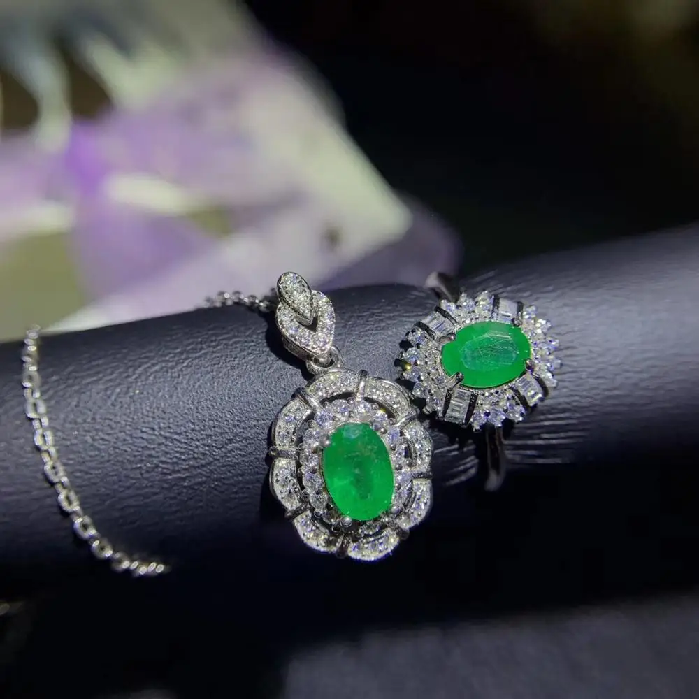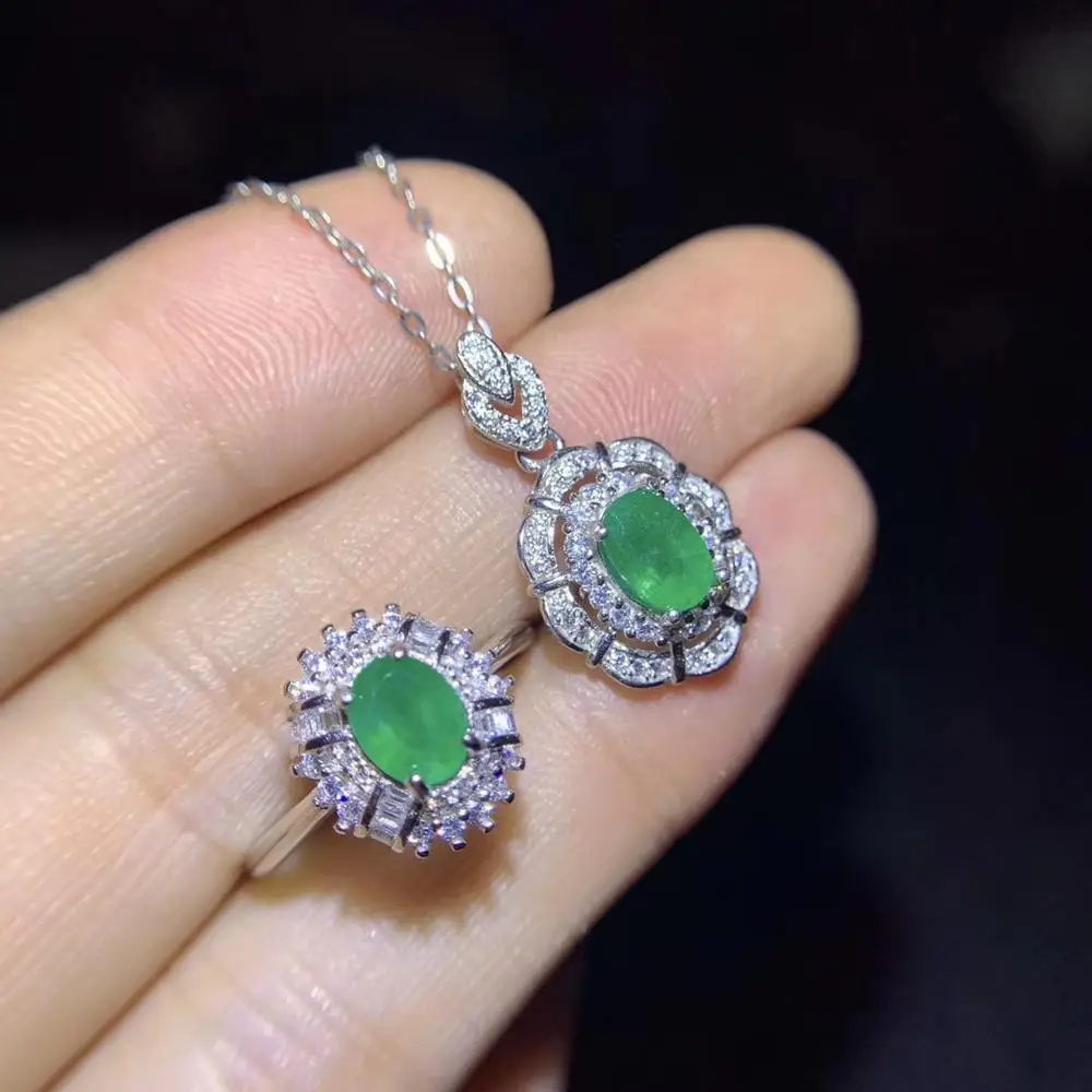 Product Name: استعادة القديمة زهرة الطبيعي 5*7 الأخضر الزمرد جوهرة S925 الفضة قلادة عصابة الطبيعية الأحجار الكريمة طقم مجوهرات فتاة حزب مجوهرات