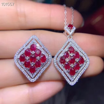 Product Name: شحن مجاني الطبيعية مجوهرات من الياقوت الأحمر مجموعة ناتوالاند ريال روبي مجموعة 925 فضة 1 قطعة قلادة ، 1 قطعة خاتم