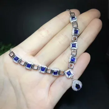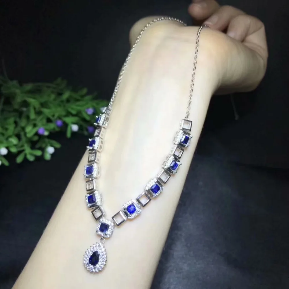 Special Offer قلادة من الياقوت الأزرق الطبيعي عقد من الأحجار الكريمة الطبيعية 925 فضية اللون للنساء فاخر عصري مربع مجوهرات الخطوبة للنساء Discount 17% Today!