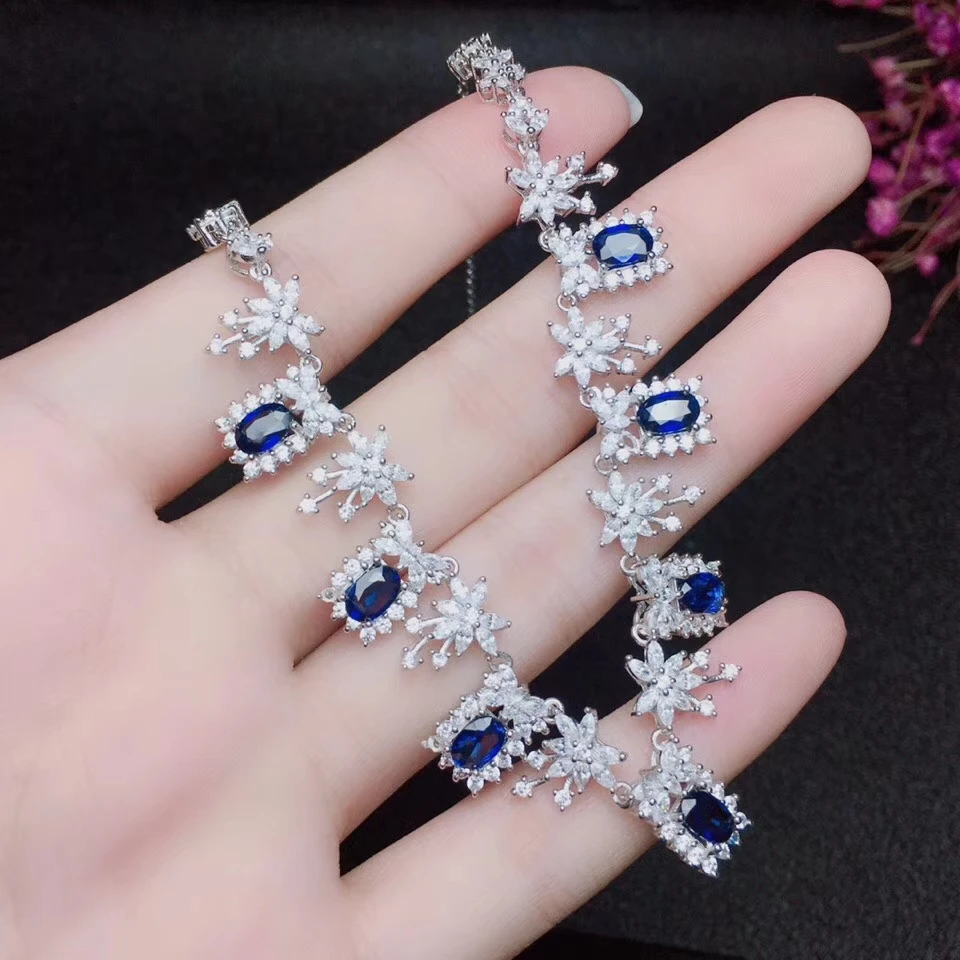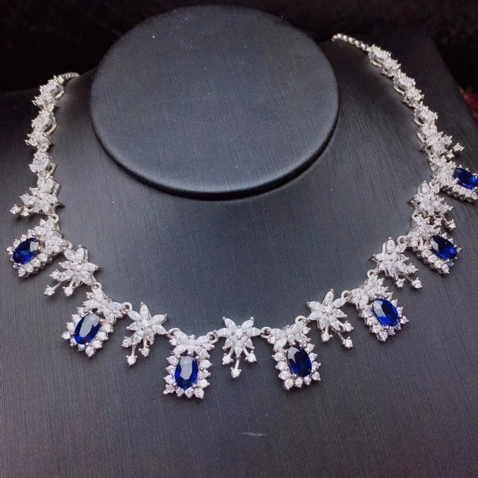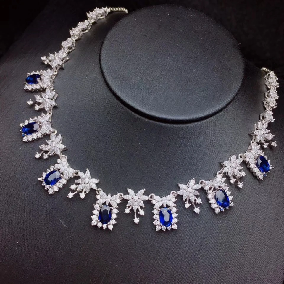 Product Name: الفاخرة ساحة زهرة الياقوت الأزرق الطبيعي جوهرة قلادة الطبيعية الأحجار الكريمة قلادة قلادة 925 الفضة امرأة مجوهرات حفلة هدية