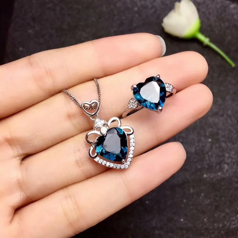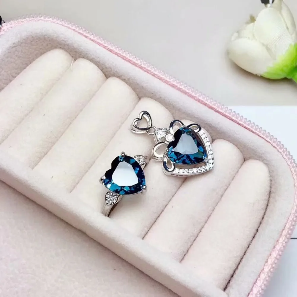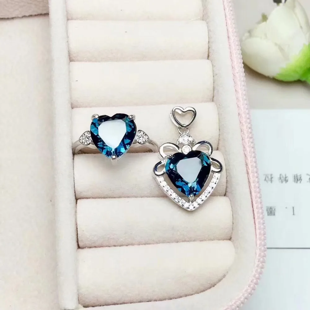 Product Name: الطبيعية الأزرق توباز جوهرة حلقة قلادة الاحجار الطبيعية مجموعة مجوهرات 925 فضة الأزياء رومانسية القلب نساء حزب هدية غرامة حلقة