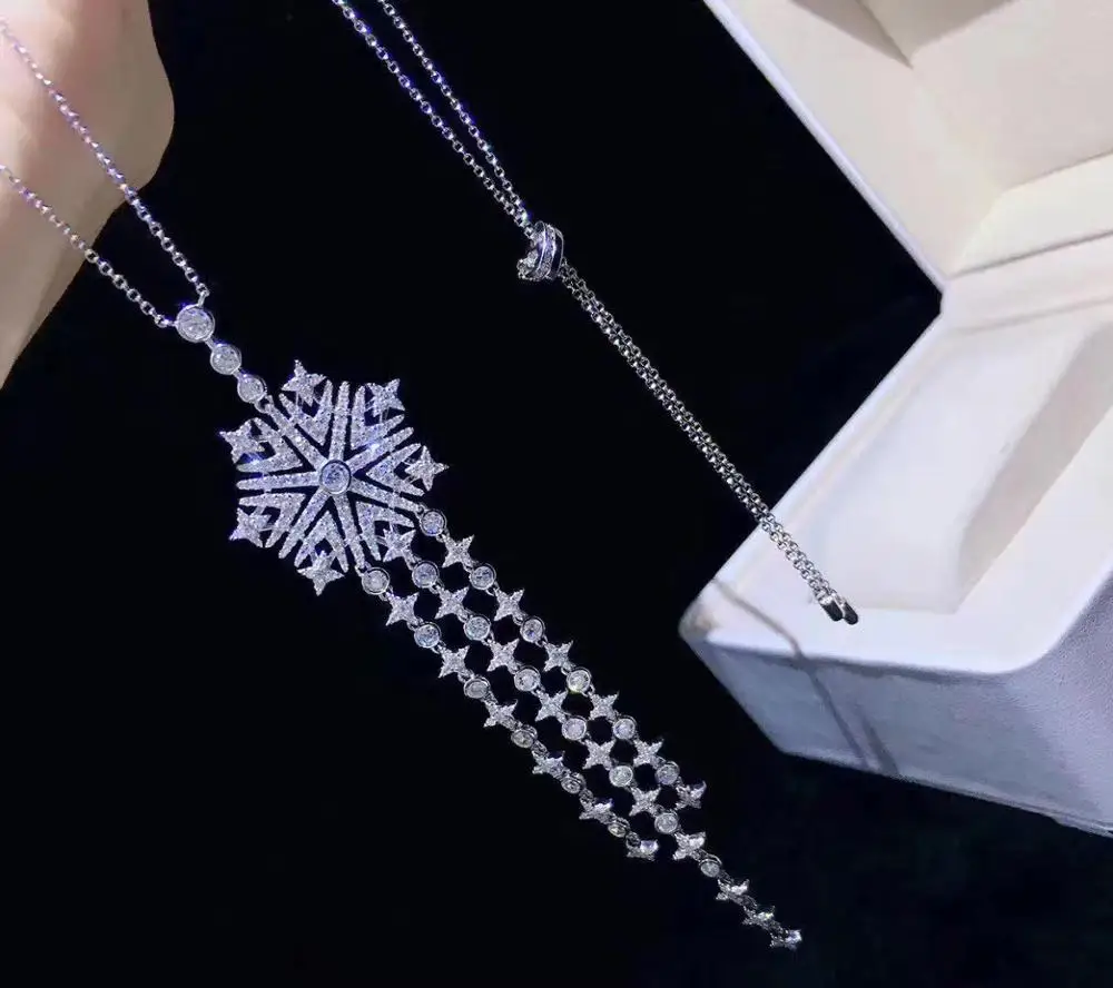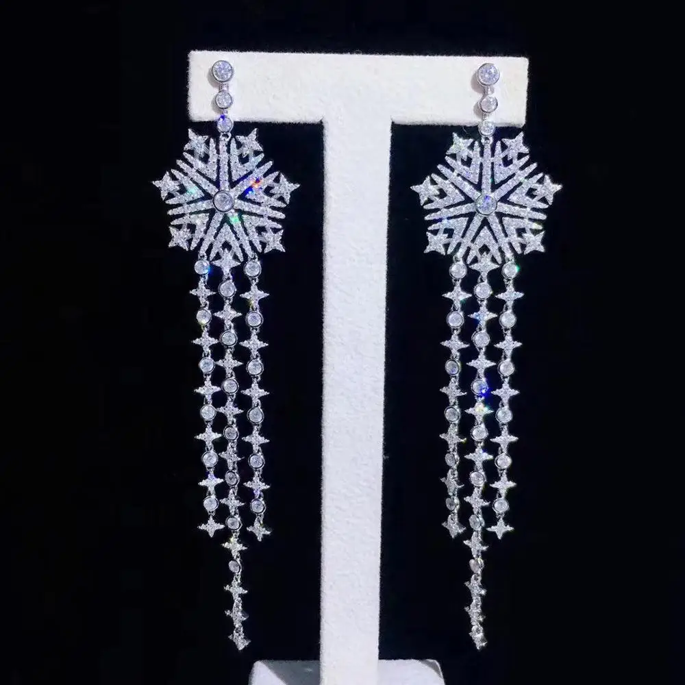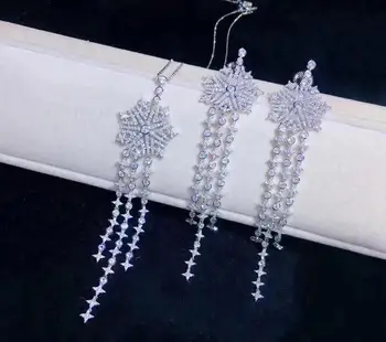 Product Name: طقم مجوهرات حلق طويل وقلادة 925 فضة مع مكعب الزركون ندفة الثلج غرامة النساء مجوهرات شحن مجاني