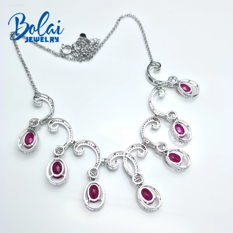 Special Offer Bolaijewelry ، قلادة فاخرة أنيقة للحفلات الطبيعية روبي البيضاوي 6*8 مللي متر 925 فضة مجوهرات الجميلة كما هدية صندوق لسيدة Discount 8% Today!