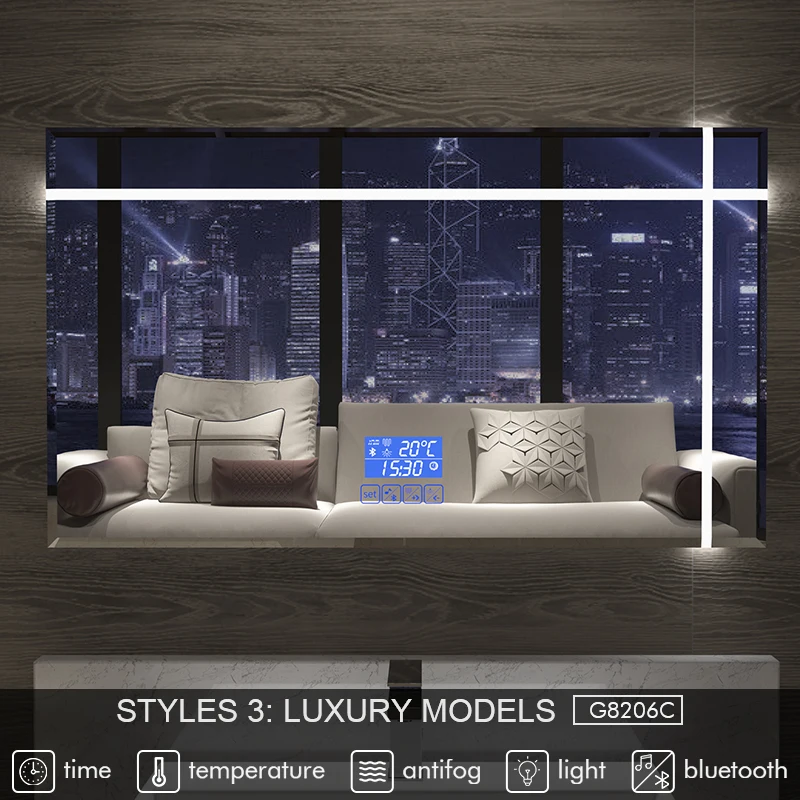 Product Name: مرآة ذكية من Gisha مرآة حمام ليد مرآة حائطية للحمام ومرآة مضادة للضباب مع شاشة لمس بلوتوث G8206