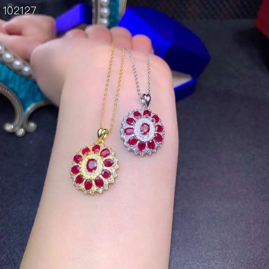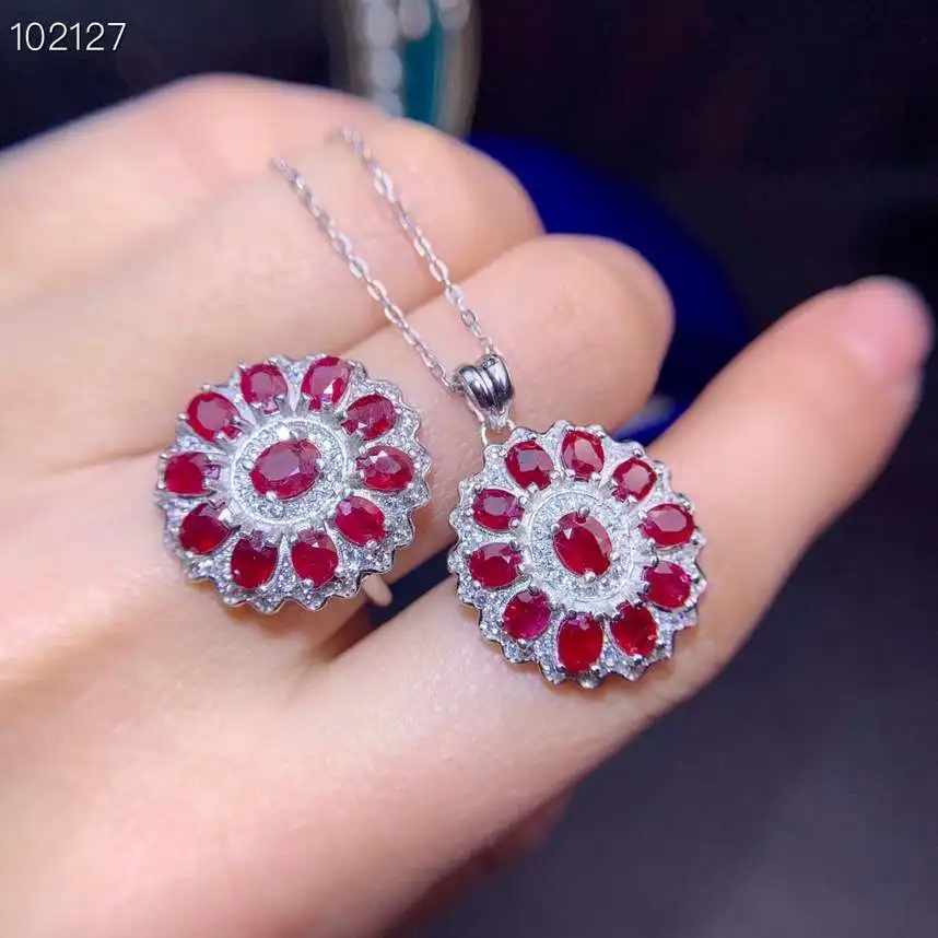 Special Offer KJJEAXCMY رائعة المجوهرات 925 الاسترليني الفضة مطعمة الطبيعية روبي السيدات خاتم فخم قلادة طقم قلادات دعم اختبار Discount 19% Today!