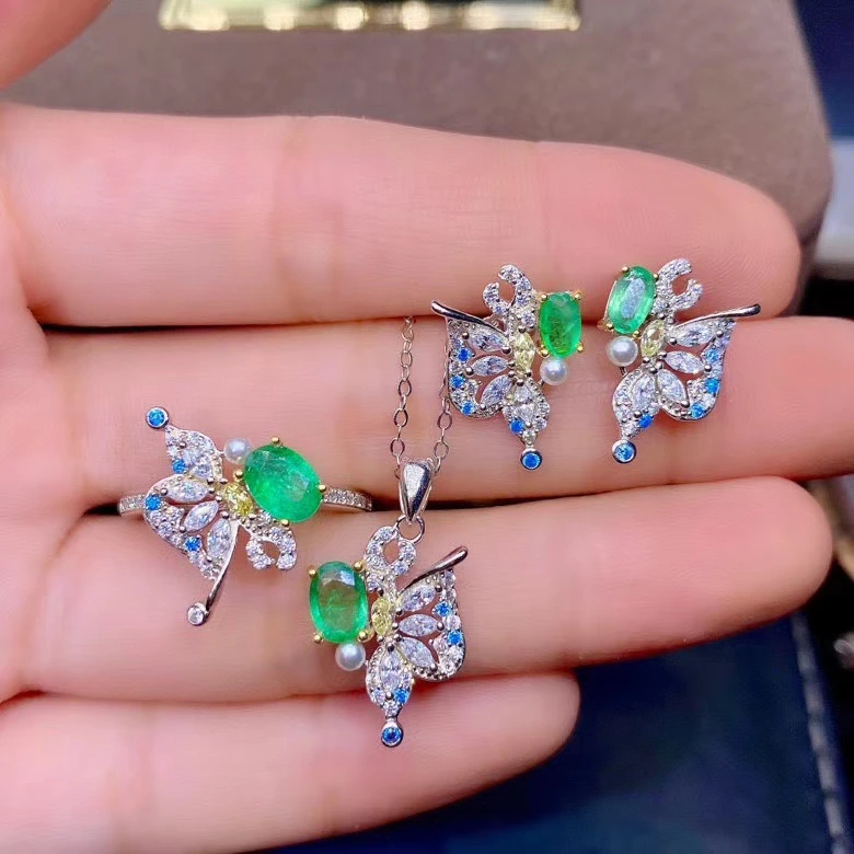 Special Offer KJJEAXCMY غرامة مجوهرات 925 فضة مطعمة الطبيعية الأحجار الكريمة الزمرد قلادة عصابة طقم من الحلقان الكلاسيكية يدعم اختبار Discount 22% Today!