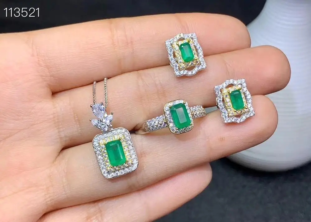 Product Name: KJJEAXCMY غرامة مجوهرات 925 فضة مطعمة الطبيعية الزمرد قلادة عصابة طقم من الحلقان أنيقة تدعم اختبار