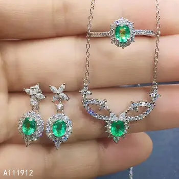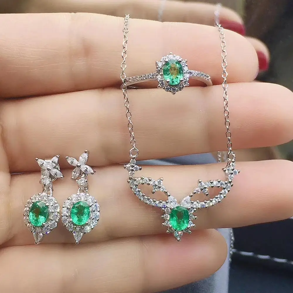 Special Offer KJJEAXCMY غرامة مجوهرات الطبيعية الزمرد 925 فضة عقد دلاية نسائية أقراط للأذن على شكل سلسلة حلقة مجموعة دعم اختبار الموضة Discount 28% Today!