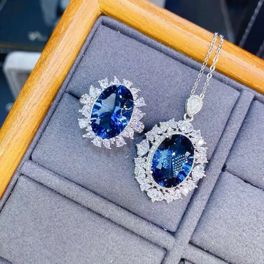 Special Offer KJJEAXCMY غرامة مجوهرات 925 فضة مطعمة الطبيعية الأزرق توباز جديد فتاة نوبل قلادة قلادة حلقة مجموعة دعم اختبار Discount 0% Today!