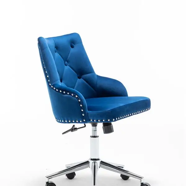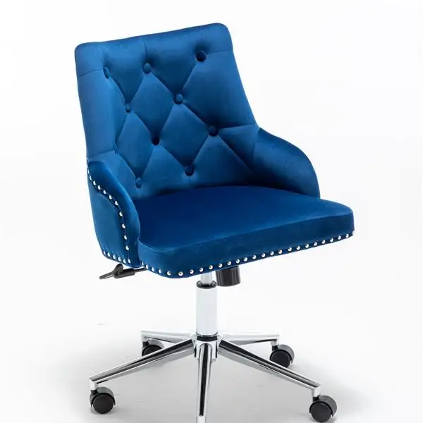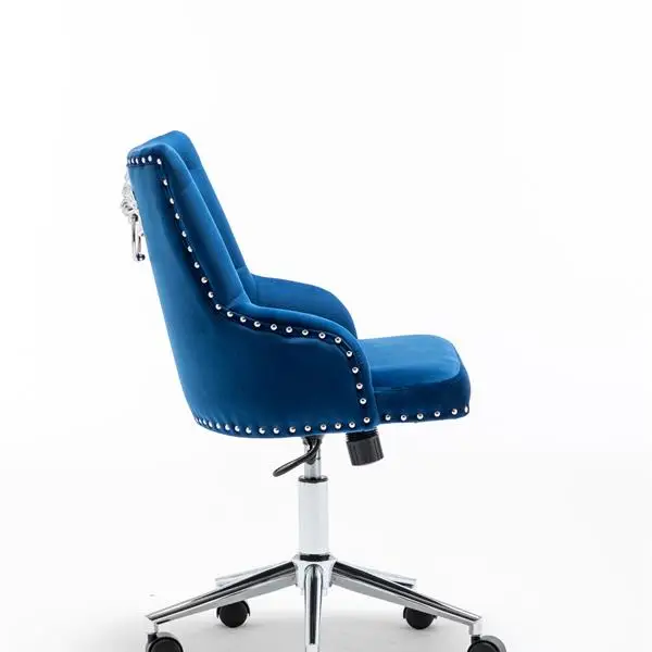 Product Name: أثاث المنزل عالية الظهر كرسي مكتب مع حلقة سحب ، التصميم الحديث المخملية مكتب مقعد عمل مع الأسلحة في غرفة نوم الدراسة (الأزرق)