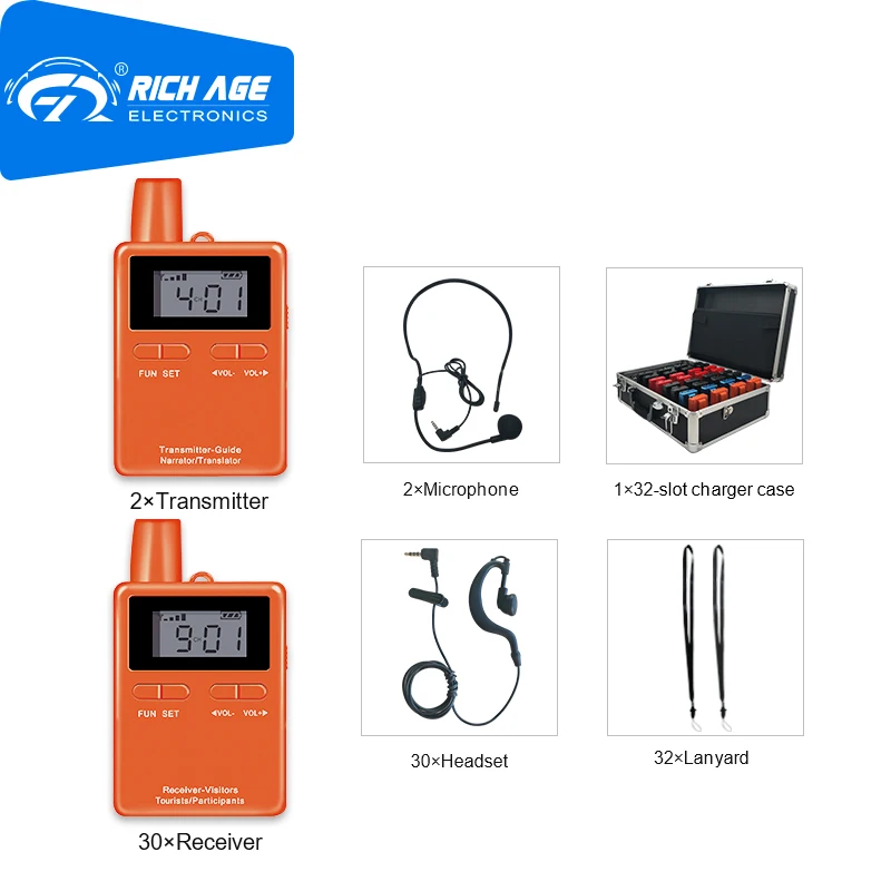 Product Name: RichiTek جولة الصوت دليل نظام سماعة الإرسال 2 + 30 إستقبال لل المجموعات السياحية مع مكثف ميكروفون