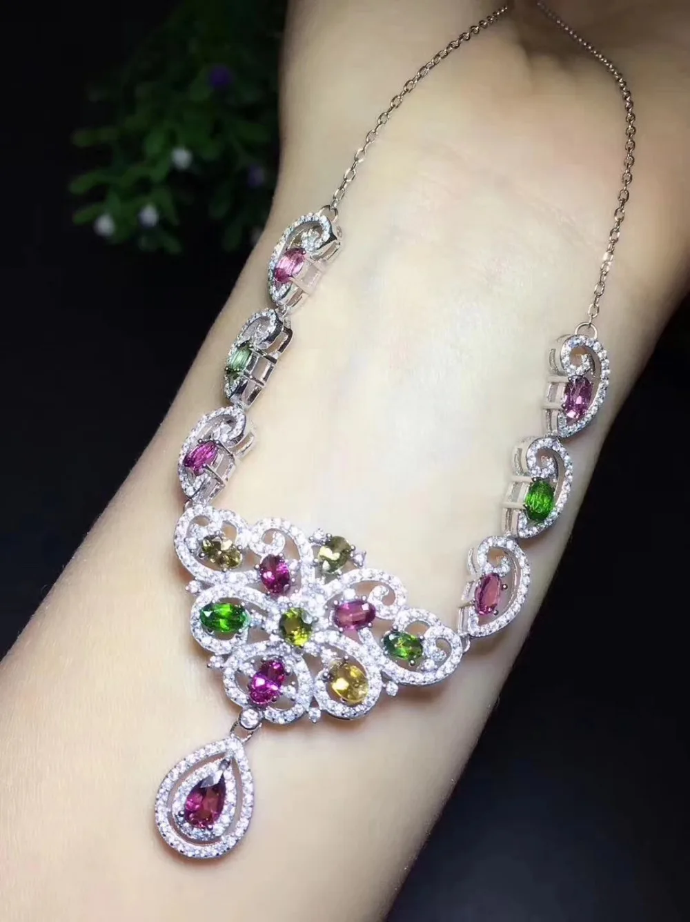 Special Offer متعدد الألوان الطبيعية التورمالين قلادة الطبيعية الأحجار الكريمة زهرة أنيقة عقد بحلية متدلية على شكل فراشة قلادة S925 فضة النساء غرامة مجوهرا... Discount 17% Today!
