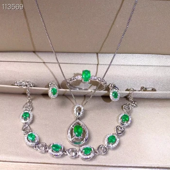 Product Name: الأزياء الرومانسية الخوخ S925 الفضة الطبيعية الخضراء الزمرد جوهرة قلادة عصابة سوار الأقراط الأحجار الكريمة الطبيعية طقم مجوهرات مجوهرات