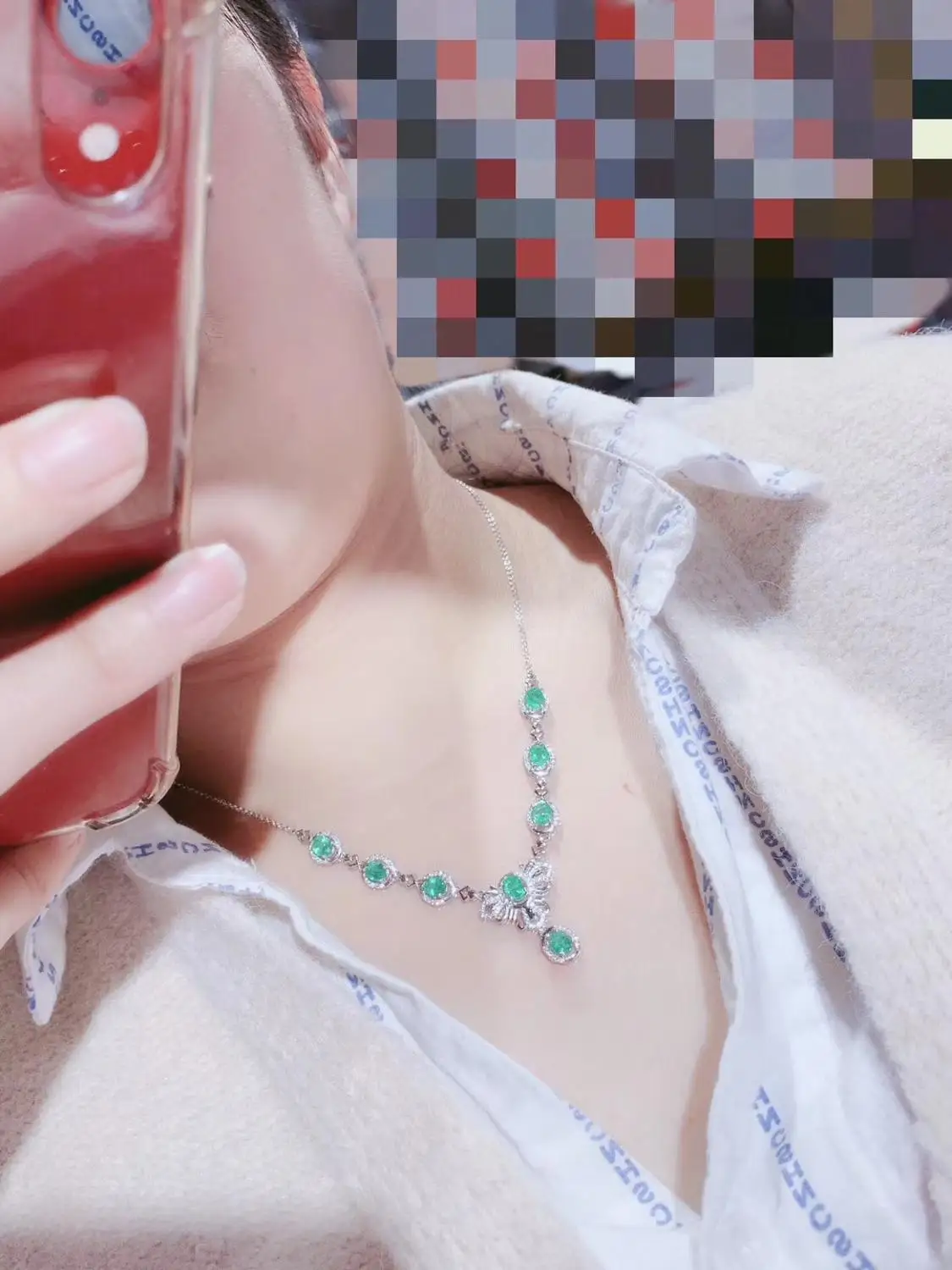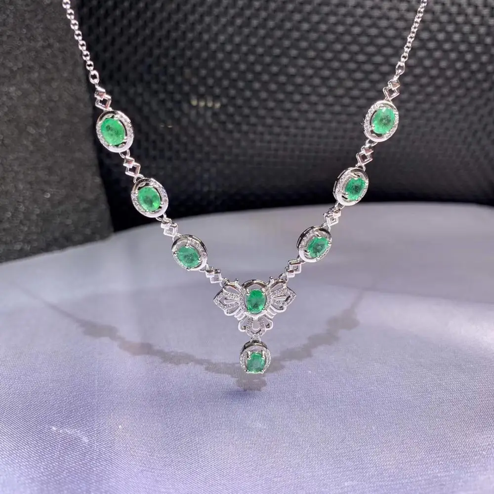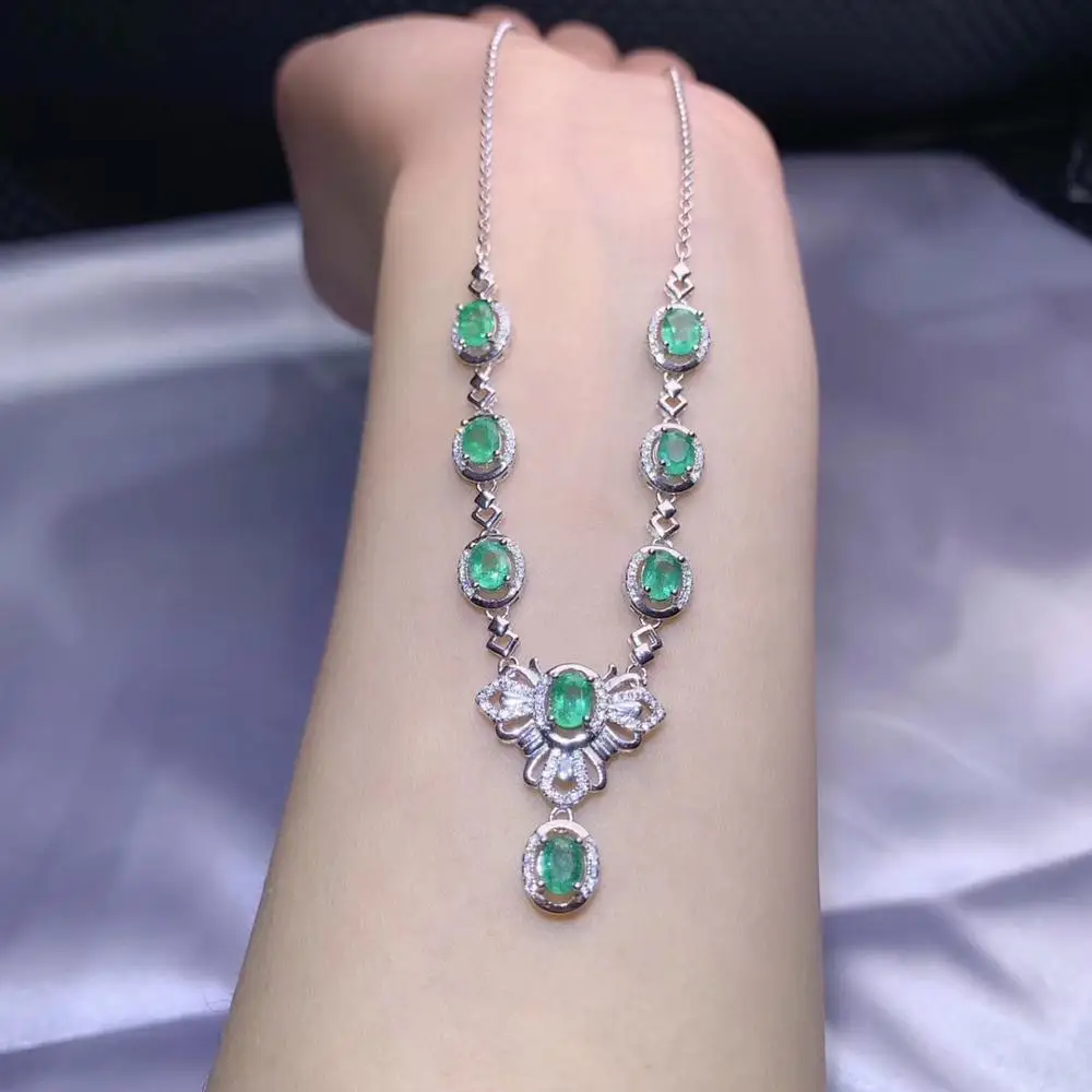 Product Name: الطبيعي الأخضر الزمرد قلادة قلادة S925 الفضة الطبيعية الأحجار الكريمة قلادة الفاخرة القديمة فراشة امرأة حزب مجوهرات
