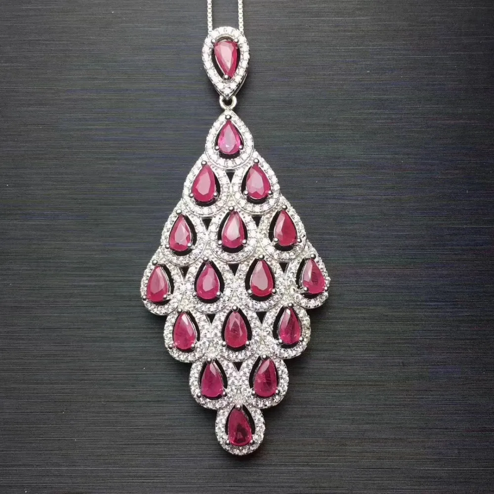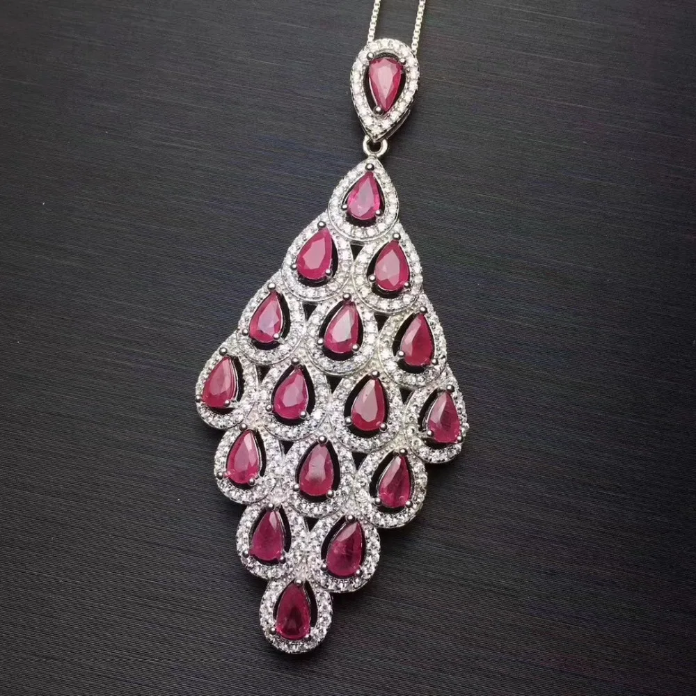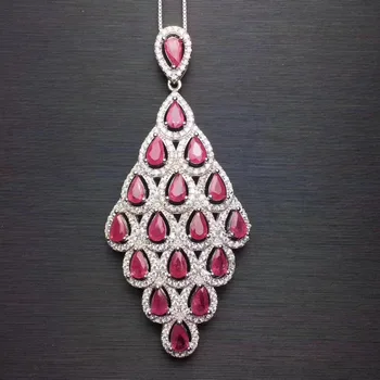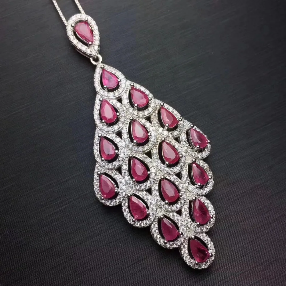 Special Offer الطبيعية الأحمر روبي جوهرة قلادة الاحجار الطبيعية أنيقة ذيل الطاووس ريشة قلادة قلادة S925 الفضة النساء الزفاف المجوهرات Discount 18% Today!