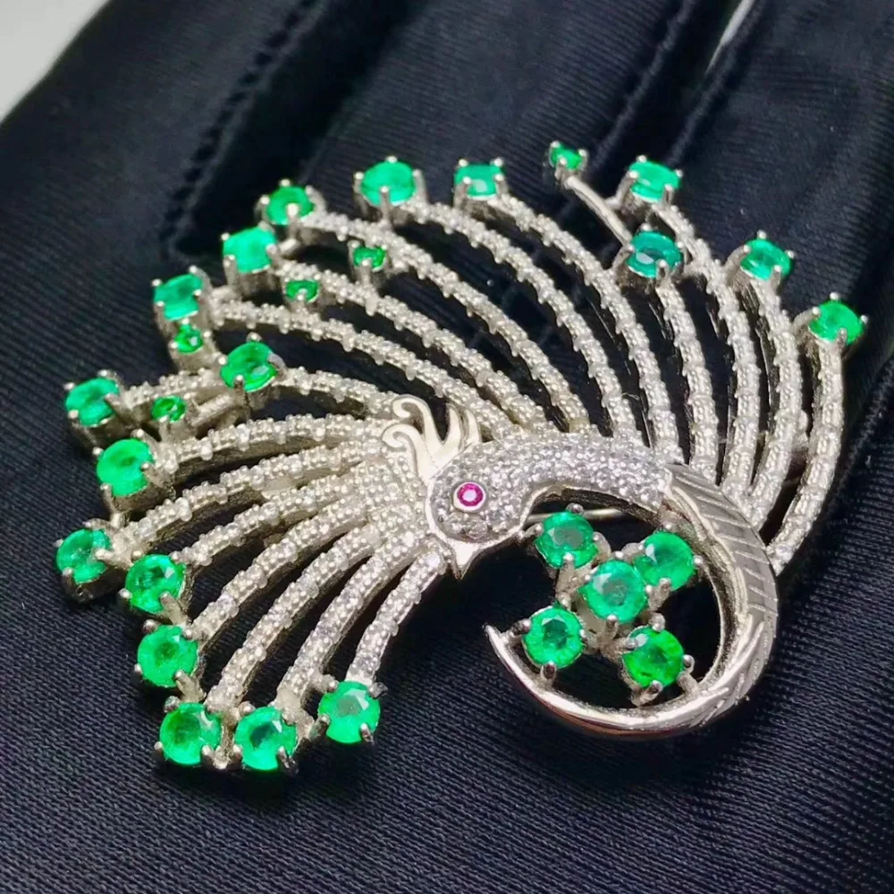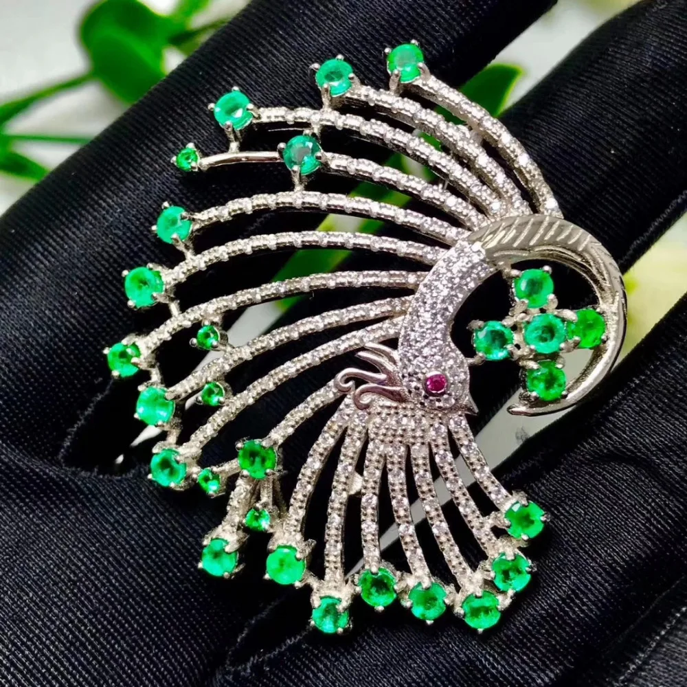 Special Offer الطبيعية الخضراء الزمرد أنيقة فخمة أجنحة الطاووس بروش قلادة الاحجار الطبيعية بروش S925 فضة النساء هدية مجوهرات Discount 18% Today!