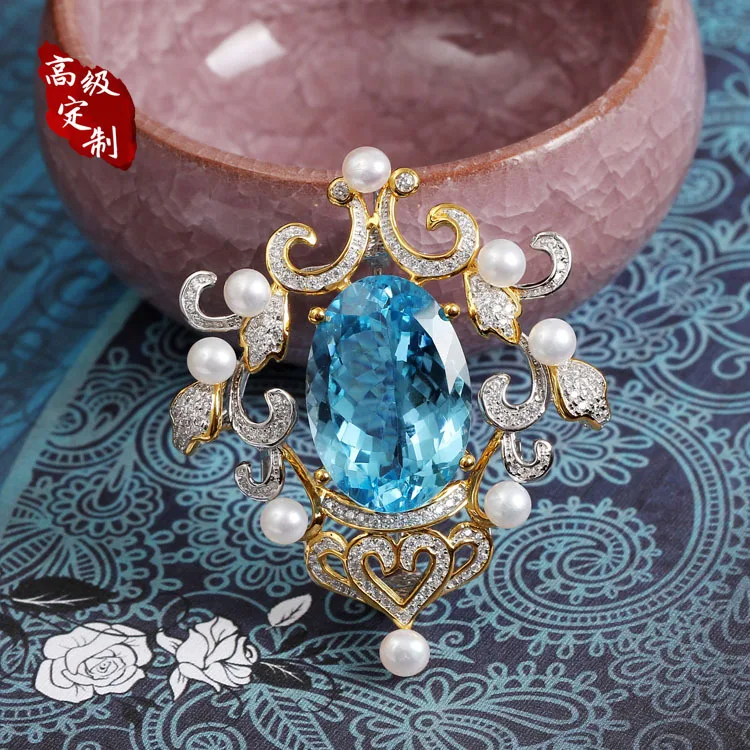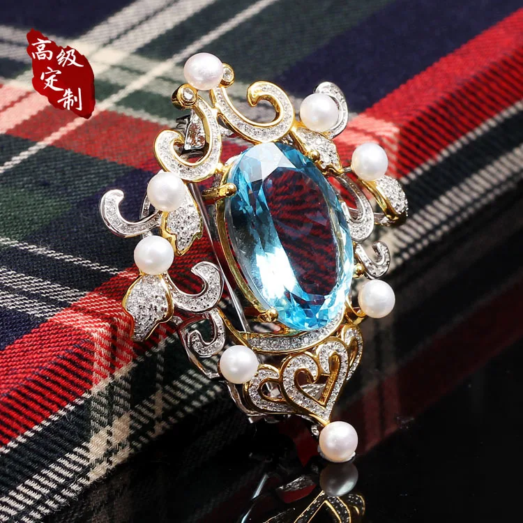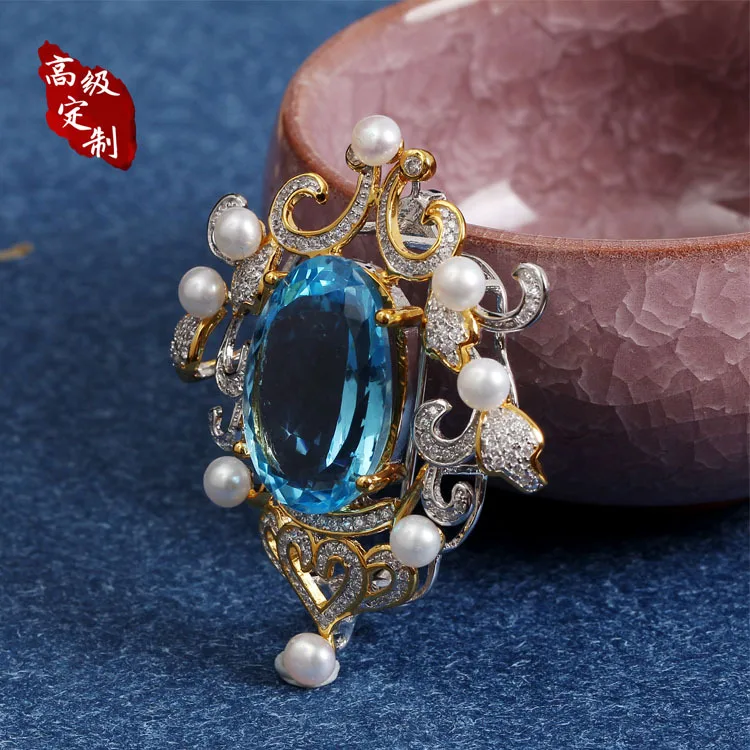 Product Name: الرجعية مجوهرات الخاص مخصصة S925 فضة البطانة الطبيعية توباز قلادة و بروش ذات الاستخدام المزدوج يدويا نحت قلادة