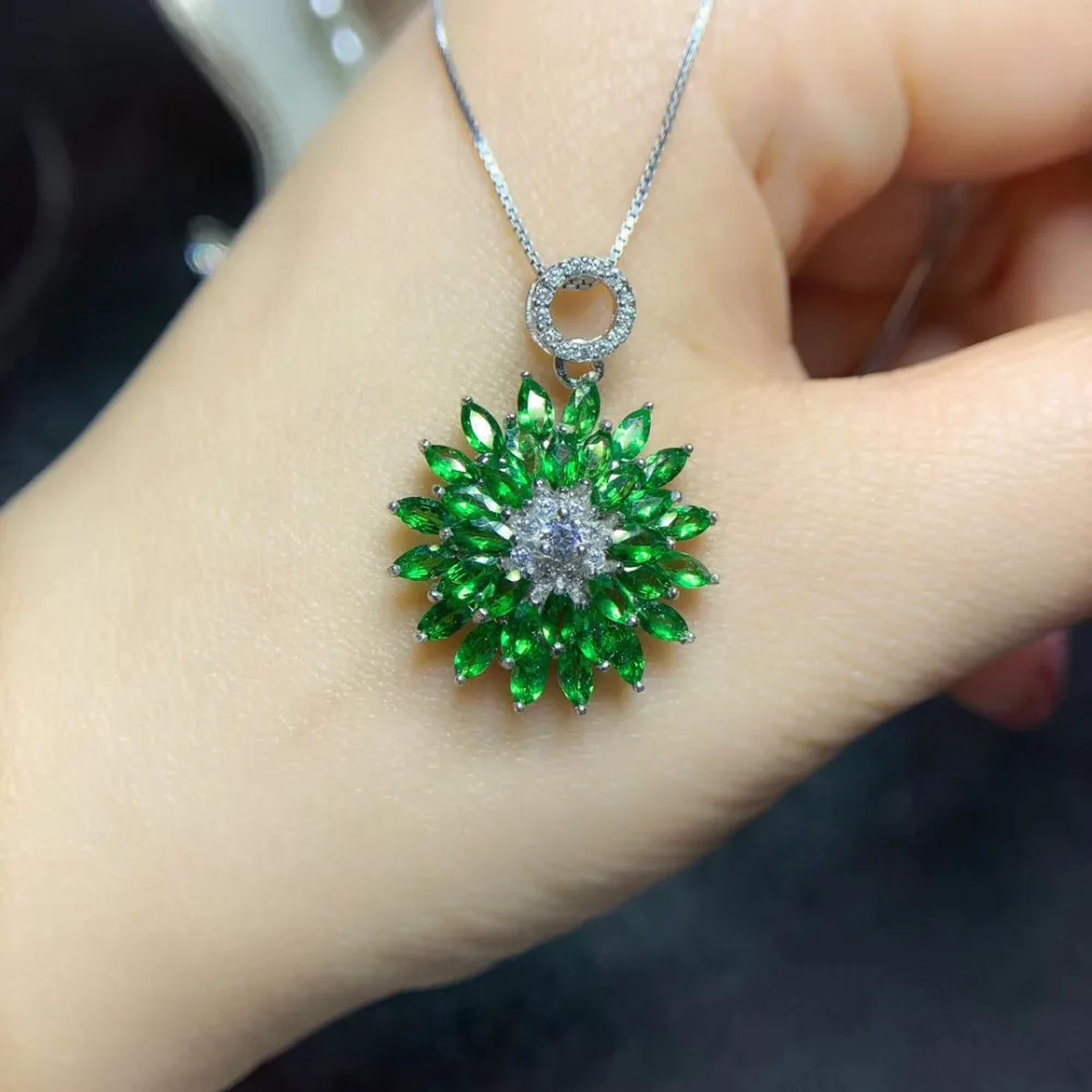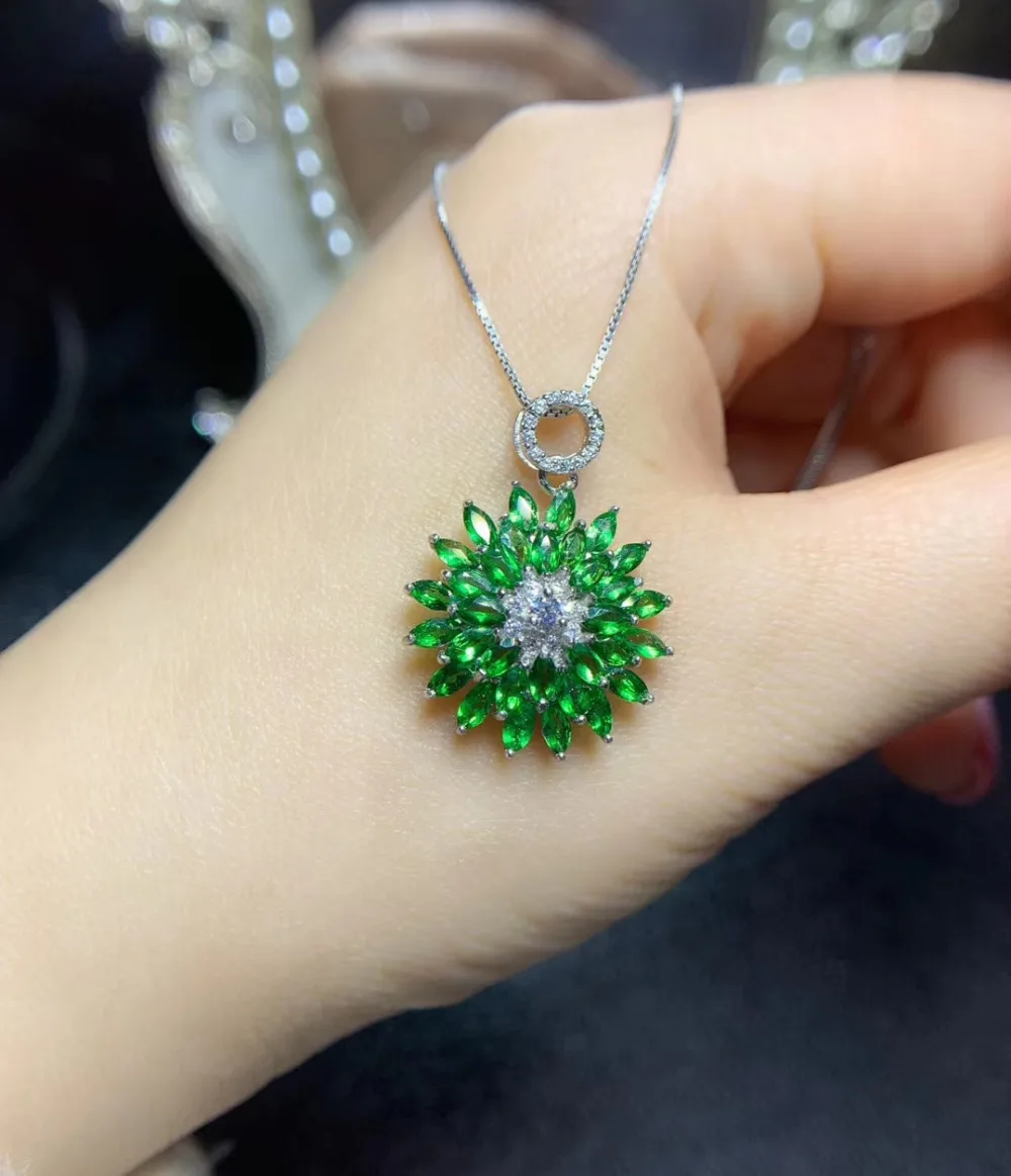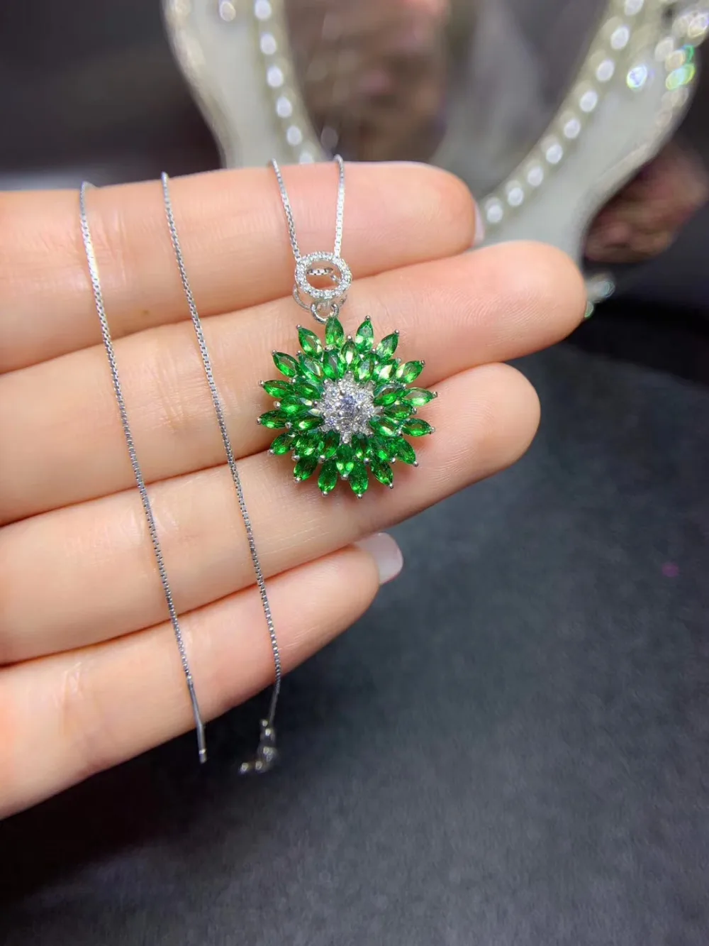 Product Name: الطبيعي تسافوريتي قلادة S925 الفضة الطبيعية العقيق الأخضر قلادة قلادة أنيقة زهرة Talonpaw النساء حزب هدية مجوهرات