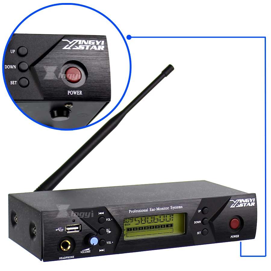 Product Name: جهاز مراقبة احترافي لمرحلتي الأذن بنظام UHF لاسلكي جهاز استقبال ذو وجهين وجهاز رصد مرسل USB واحد في سماعة أذن