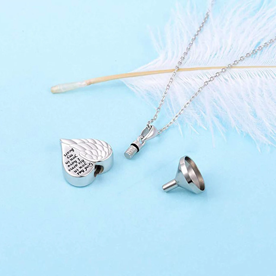Product Name: YAFEINI 925 فضة القلب القلادة ل رماد تذكارية الملاك الجناح رسالة قلادة الحرق الحيوانات الأليفة الرماد حامل القلائد