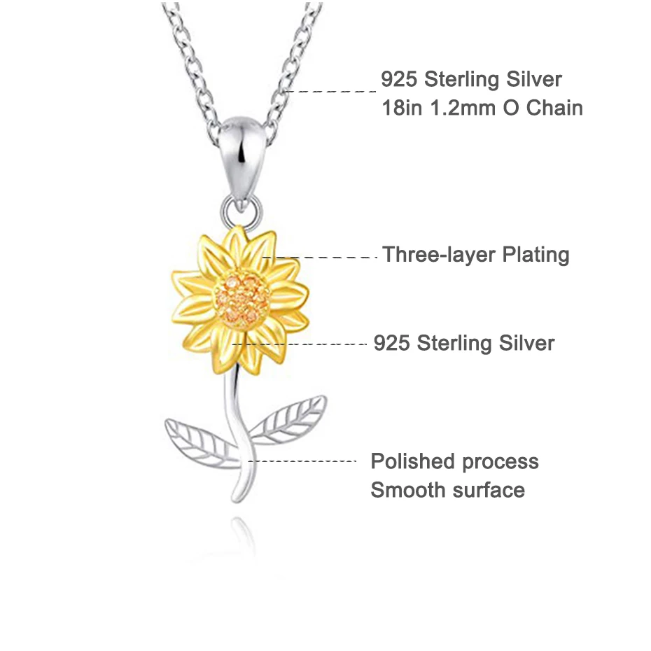 Product Name: YAFEINI 925 فضة عباد الشمس القلائد مكعب دلاية من حجر الزركون قلادة 925 فضة المرأة هدية عيد الأم هدايا عباد الشمس