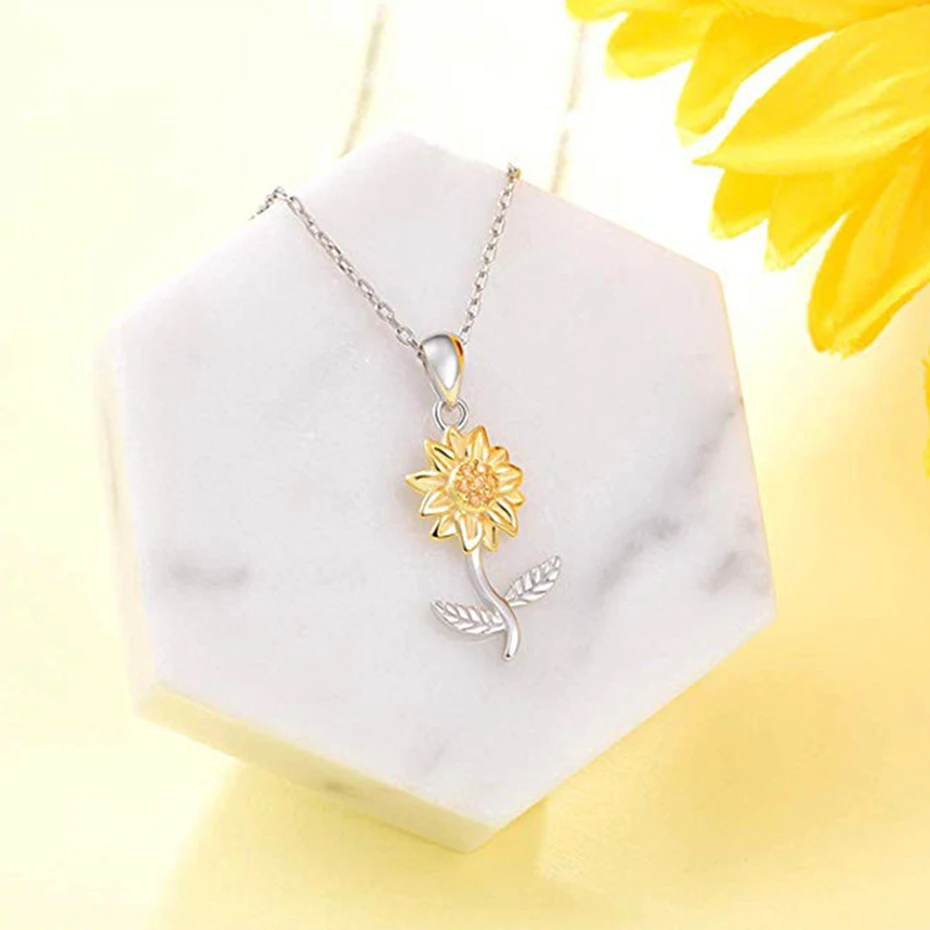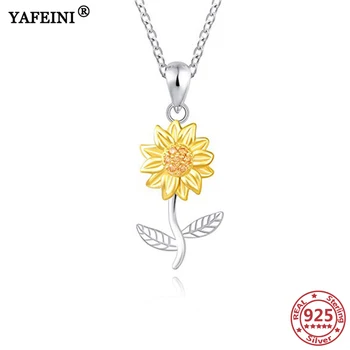 Special Offer YAFEINI 925 فضة عباد الشمس القلائد مكعب دلاية من حجر الزركون قلادة 925 فضة المرأة هدية عيد الأم هدايا عباد الشمس Discount 0% Today!