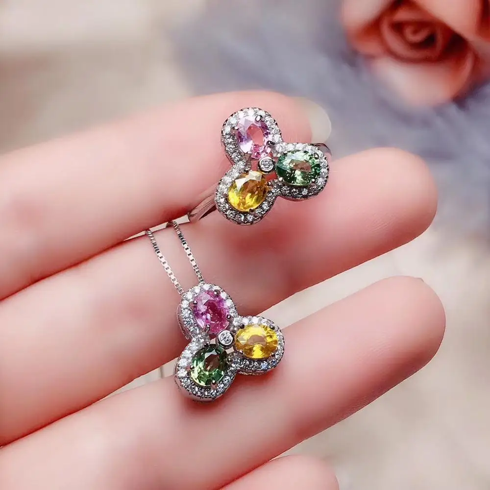 Special Offer 100% الطبيعية والحقيقية ريال الطبيعية الياقوت طقم مجوهرات الياقوت الطبيعي الحقيقي 925 فضة 1 قطعة قلادة ، 1 قطعة خاتم Discount 5% Today!