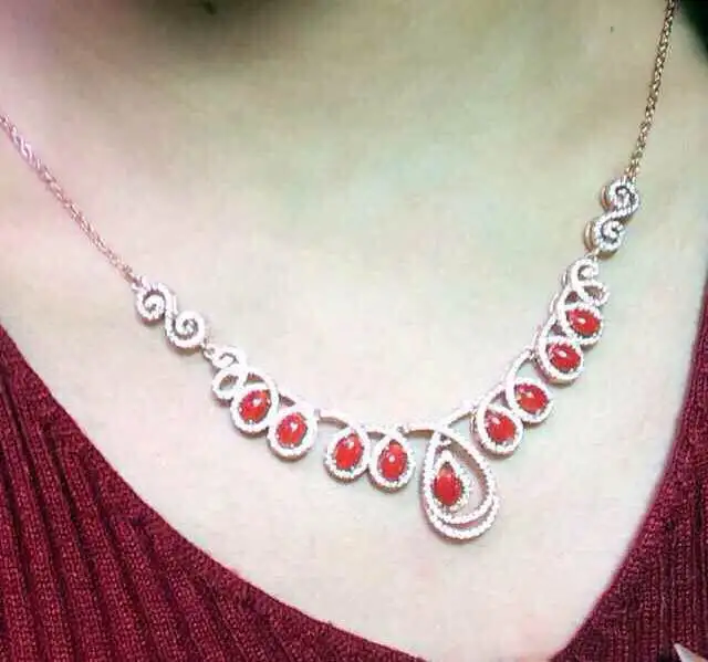 Product Name: قلادة مرجان أحمر طبيعي عقد بدلاية من الأحجار الكريمة للبنات دلاية على شكل قطرة ماء فاخرة مجوهرات فاخرة للحفلات الكبيرة