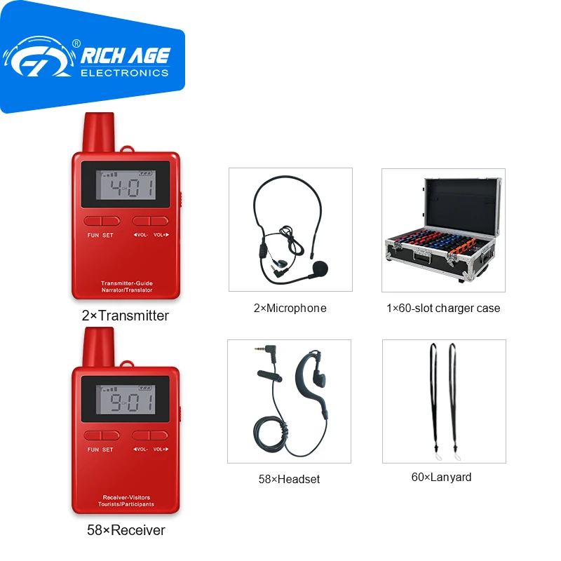 Product Name: نظام دليل الصوت ريتشتيك المحمولة 2 أجهزة الإرسال + 58 أجهزة الاستقبال وكالة السفر مع ميكروفون سماعة الرأس