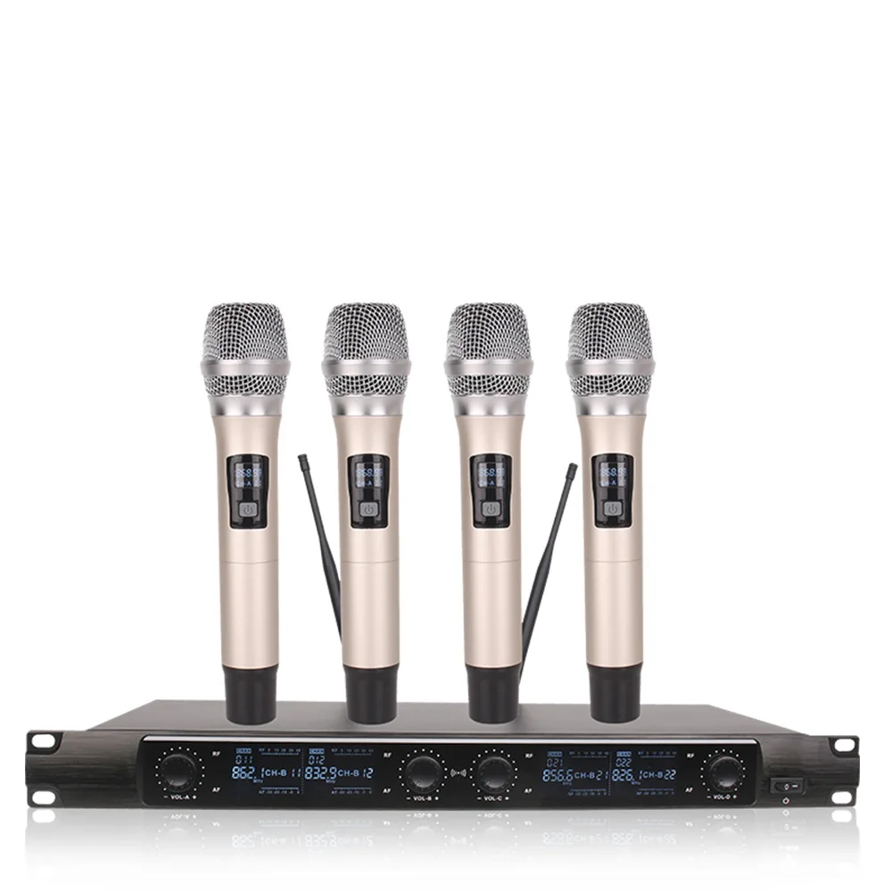 Special Offer ميكروفون مهني نظام 4 قناة ميكروفون لاسلكي مع 2 سماعة ميكروفون 2 ميكروفون اليد أداء المرحلة Discount 9% Today!