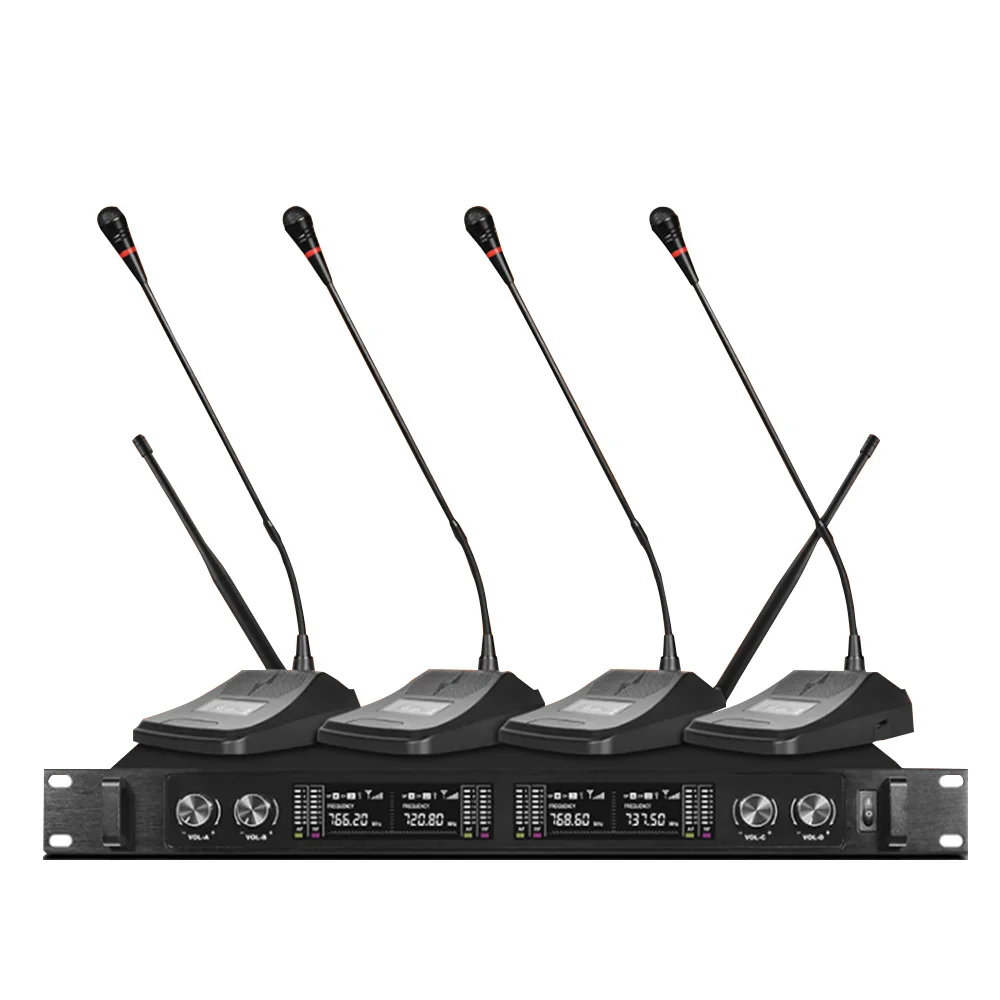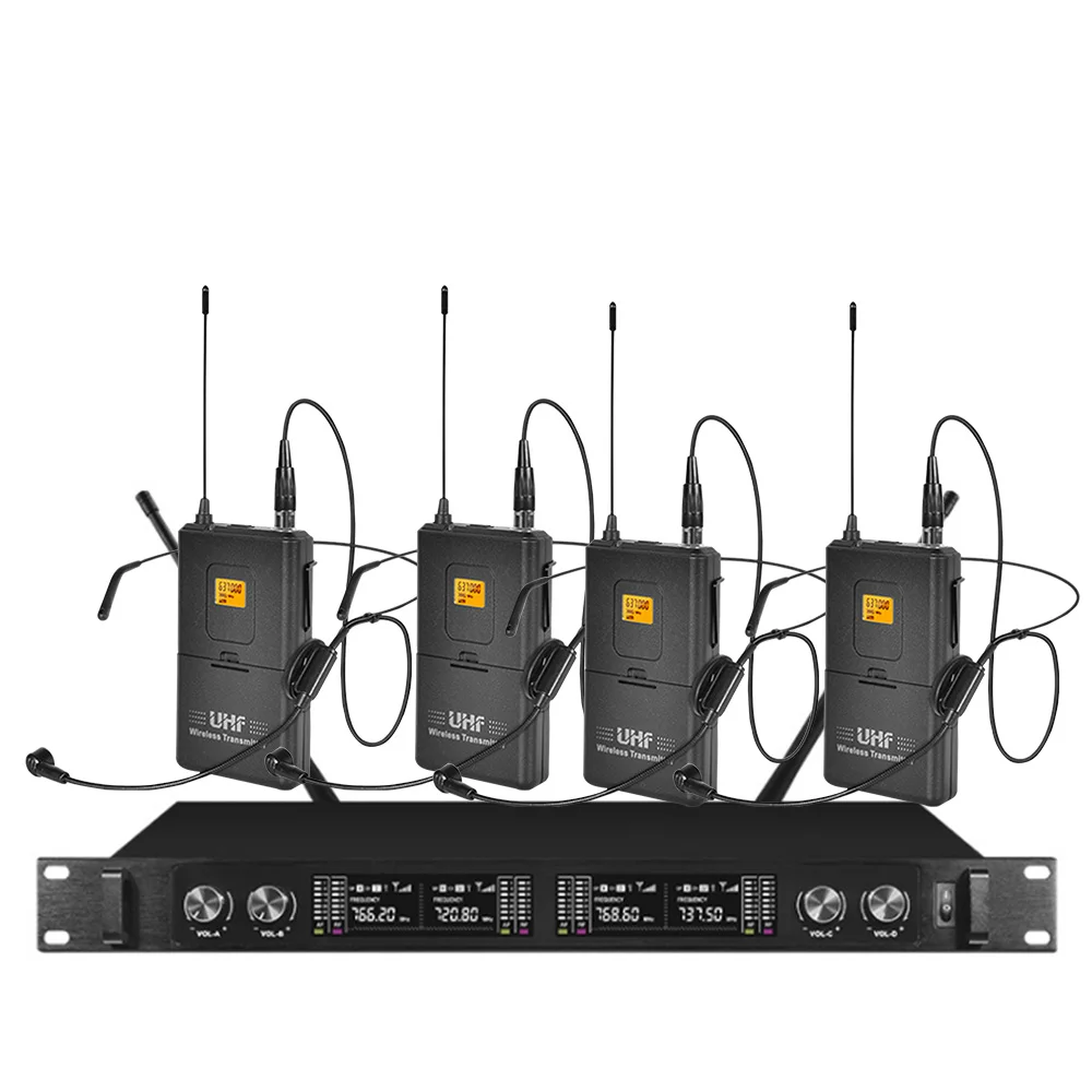 Product Name: ميكروفون لاسلكي مهني نظام 4 قناة ميكروفون Lavalier للمدرسة الكنيسة محاضرة غرفة الرقص ميكروفون لاسلكي