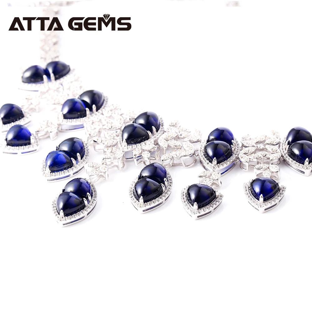 Special Offer الأزرق الياقوت فضة قلادة ل الزفاف مأدبة 40 قيراط مكون كابوشون الياقوت النساء الفاخرة نمط الفضة الحلي Discount 65% Today!