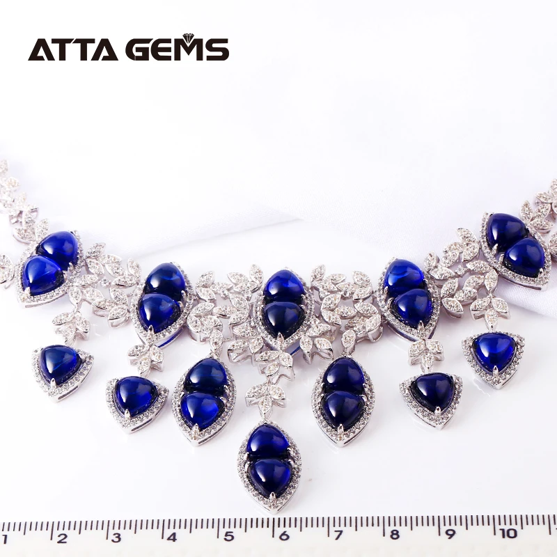 Product Name: الأزرق الياقوت فضة قلادة ل الزفاف مأدبة 40 قيراط مكون كابوشون الياقوت النساء الفاخرة نمط الفضة الحلي