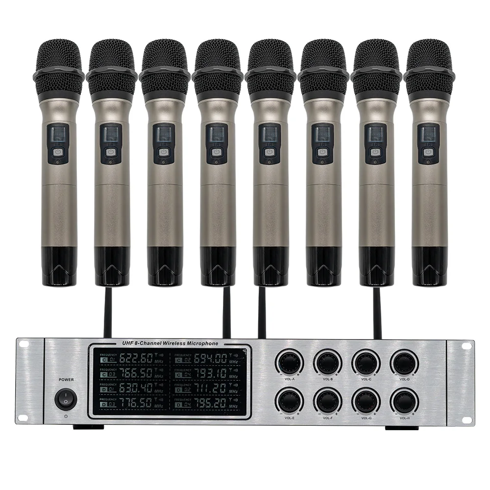 Product Name: ميكروفون لاسلكي نظام المهنية مكبر صوت لا سلكي ذو تردد فوق العالي 8-قناة مرحلة الأداء ميكروفون سماعة الرأس