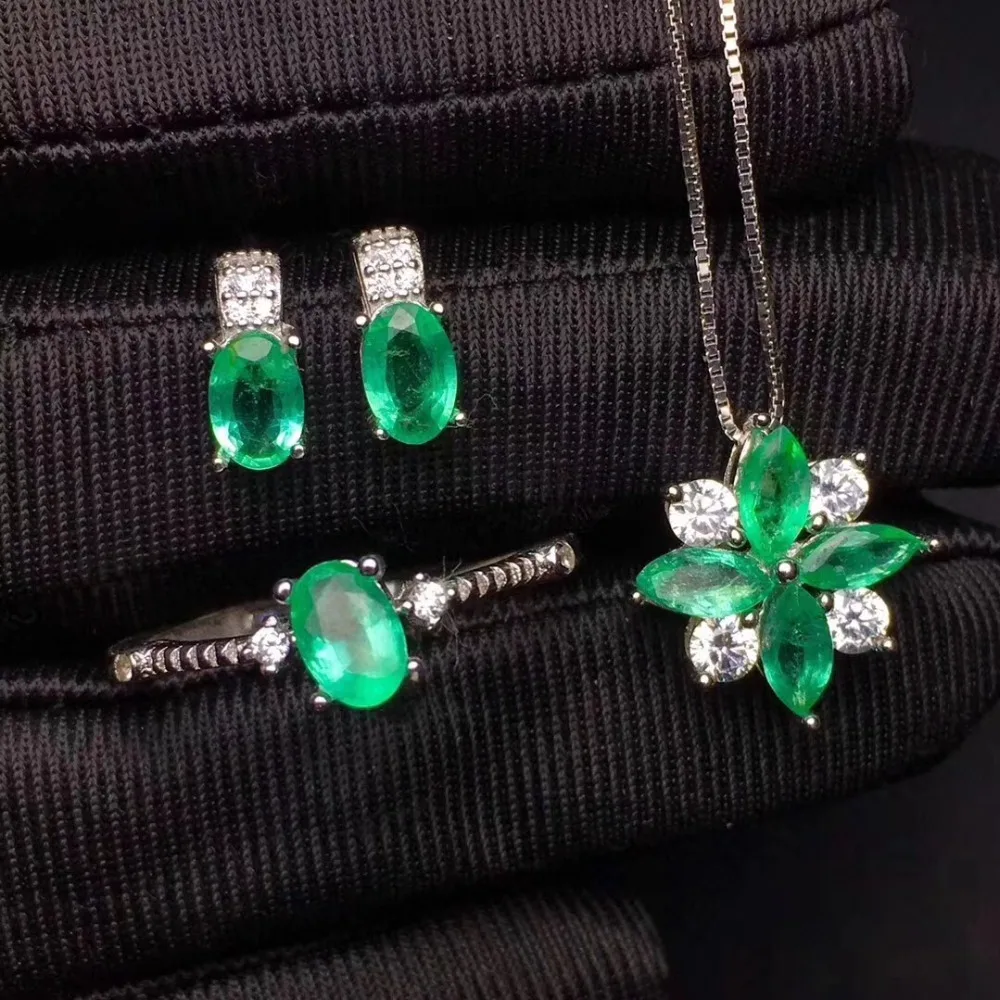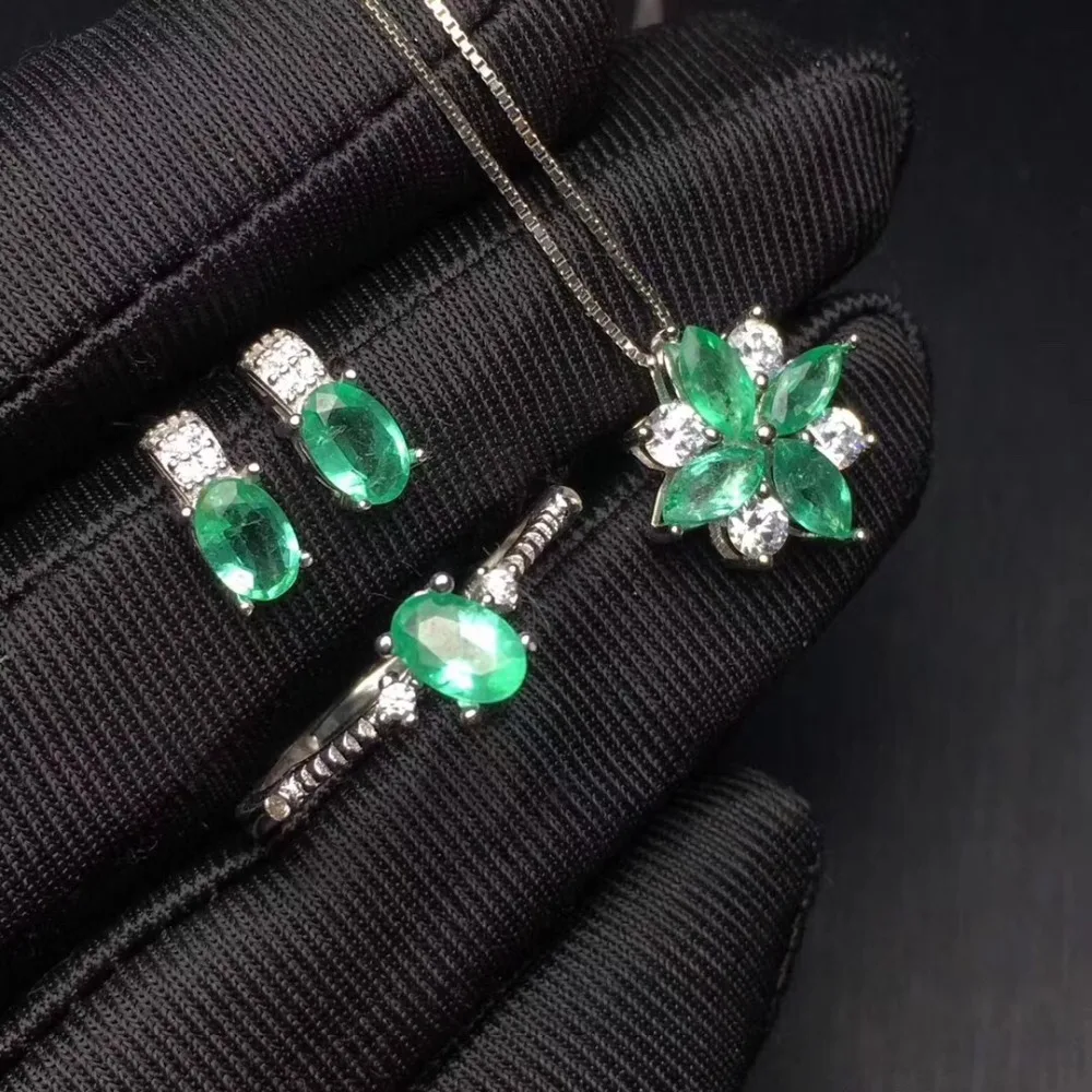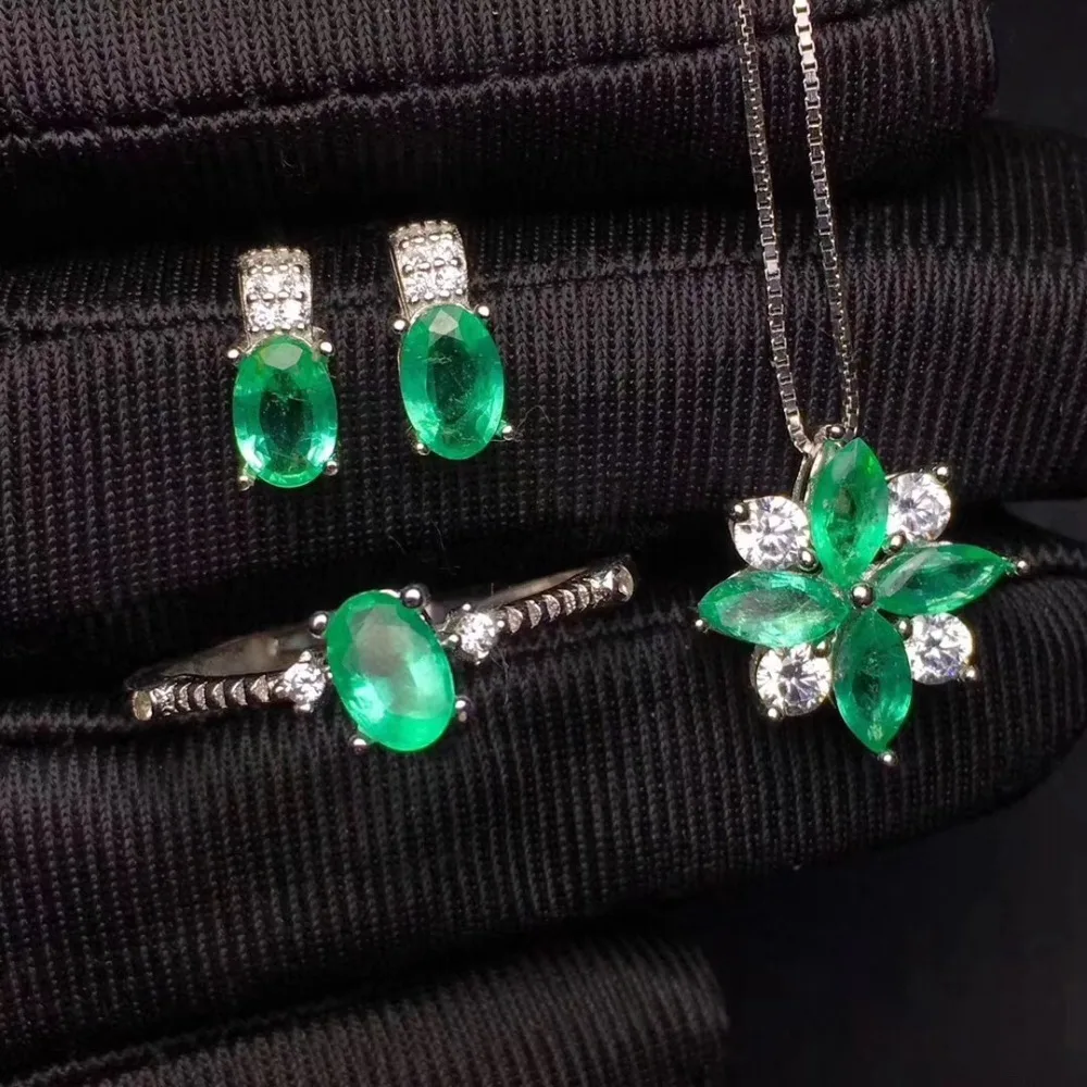 Product Name: طقم مجوهرات الزمرد الطبيعية والحقيقية الزمرد 925 فضة 1 قطعة قلادة ، 1 قطعة خاتم ، 2 قطعة القرط