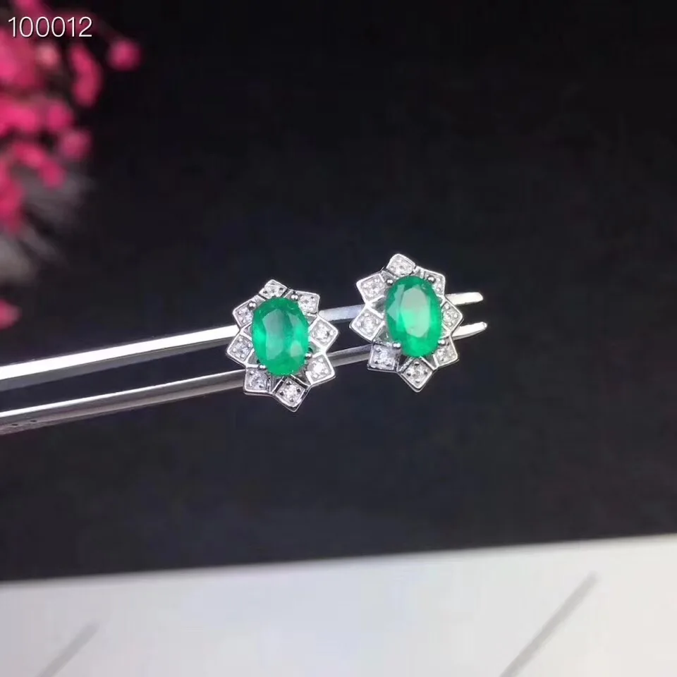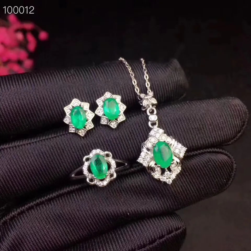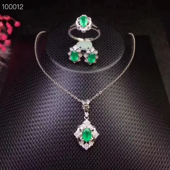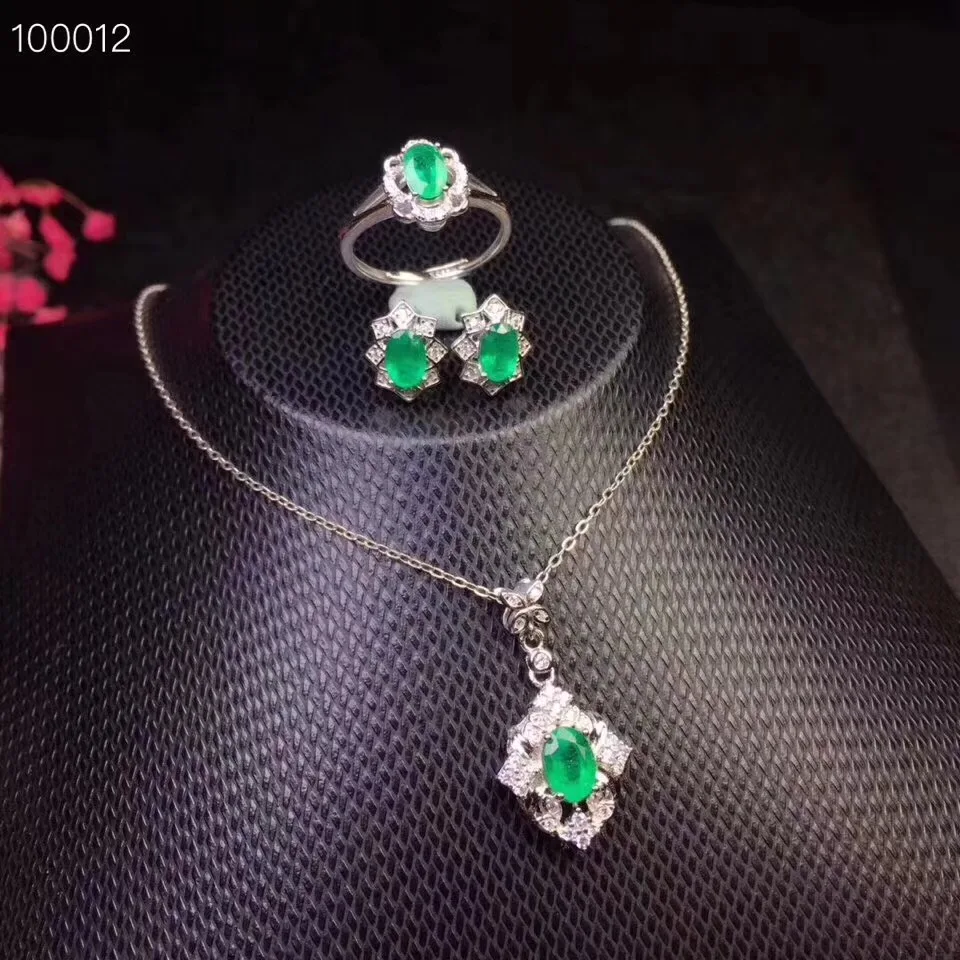 Product Name: طقم مجوهرات الزمرد الطبيعية والحقيقية الطبيعية ريال الزمرد 925 فضة 1 قطعة قلادة ، 1 قطعة خاتم ، 2 قطعة القرط