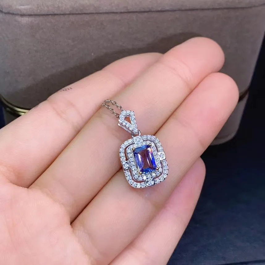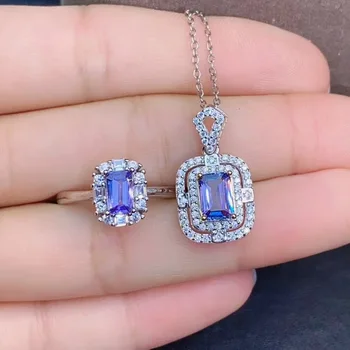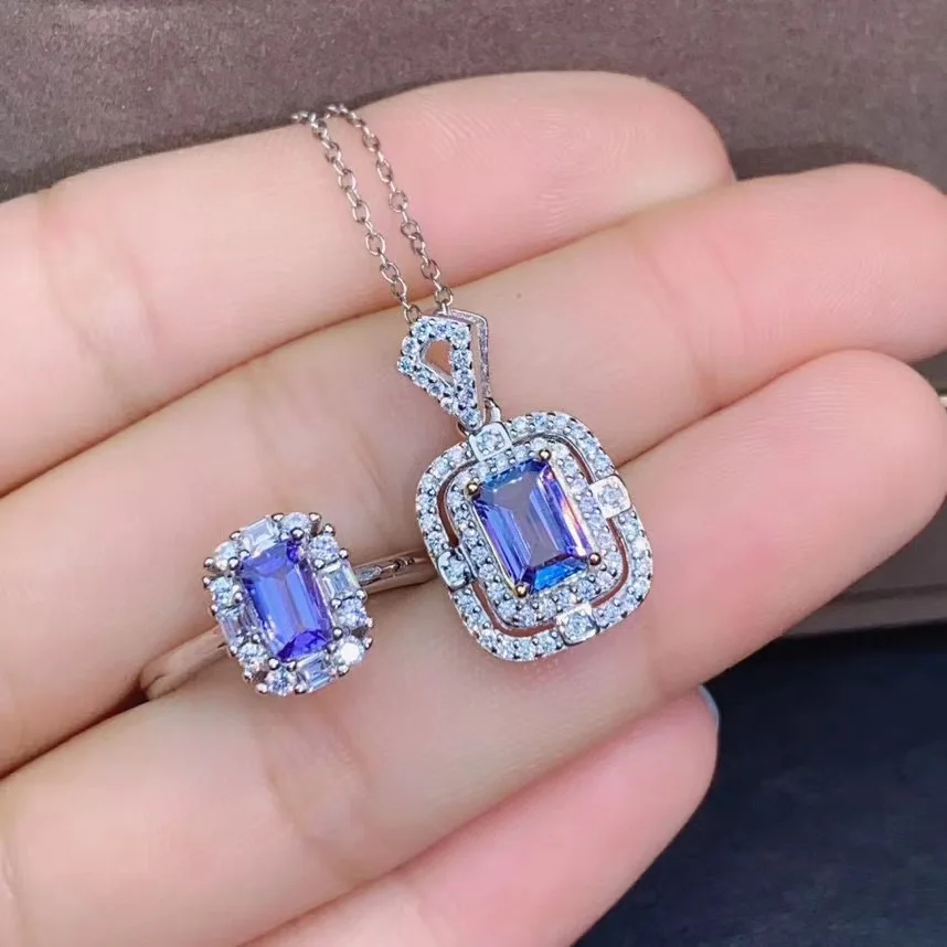 Product Name: الخطوبة أفضل هدية ريال الطبيعية تنزانيت طقم مجوهرات الطبيعية ريال تنزانيت 925 فضة 1 قطعة قلادة ، 1 قطعة خاتم