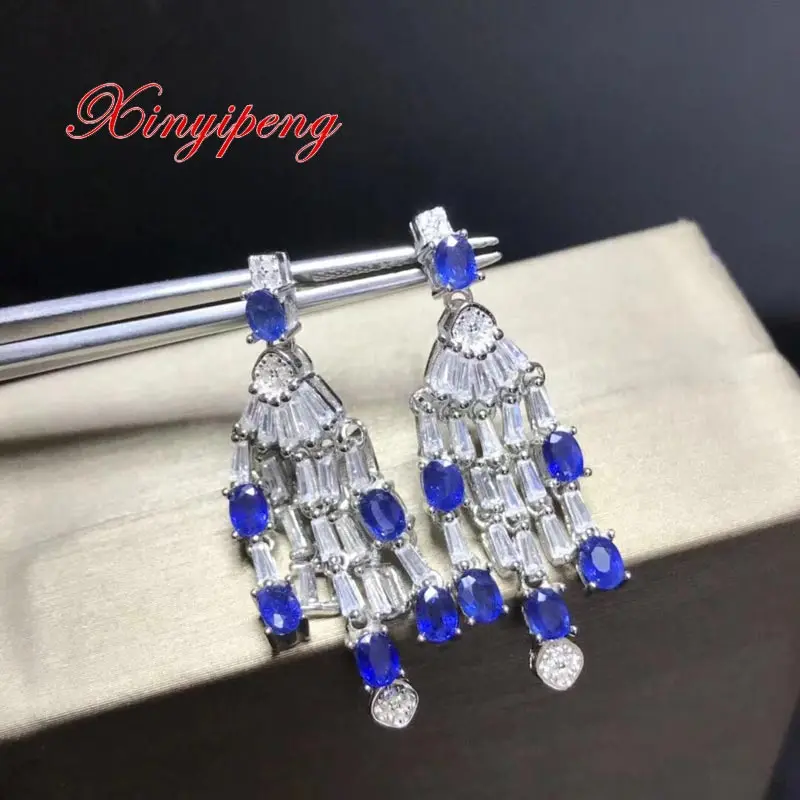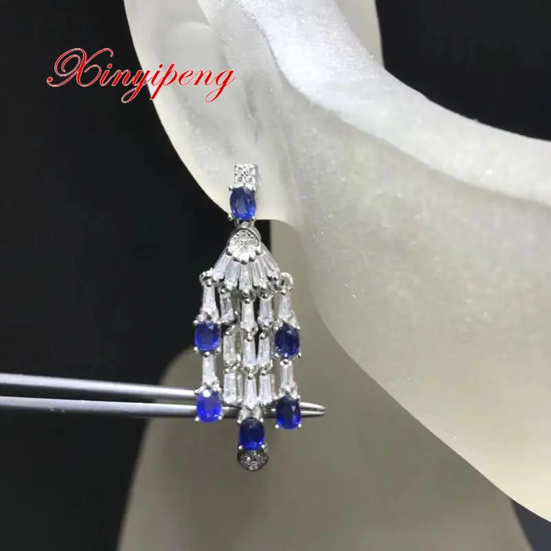 Product Name: شين يي بنغ 925 الفضة مطلي الذهب مطعمة الياقوت الطبيعي الأذن قلادة النساء الأقراط أزياء رائعة