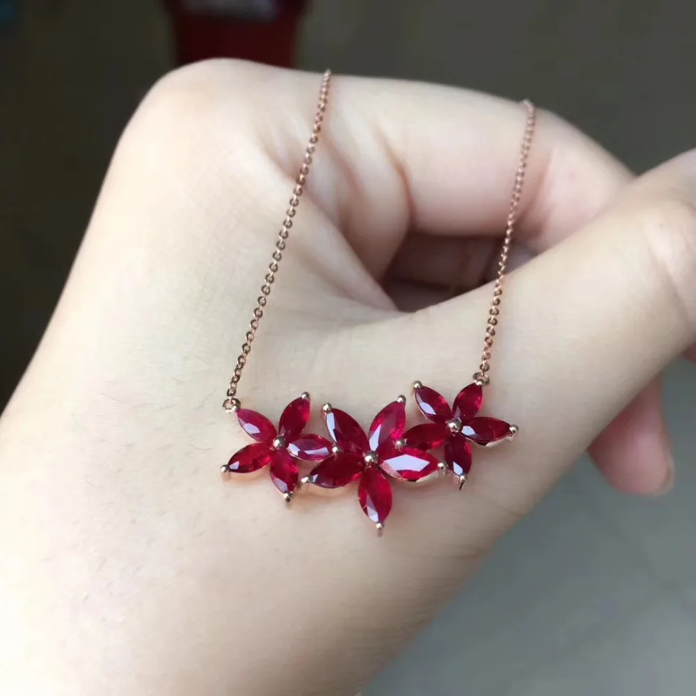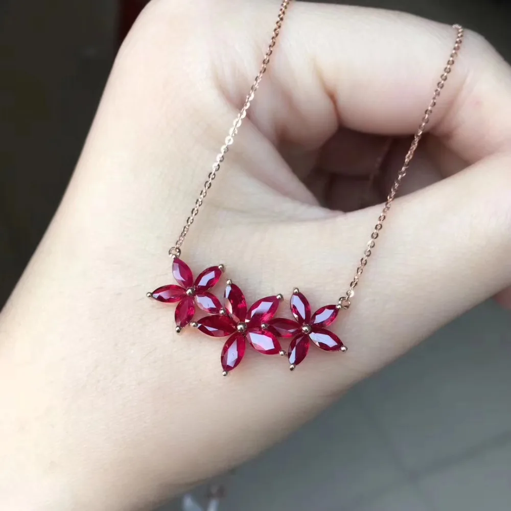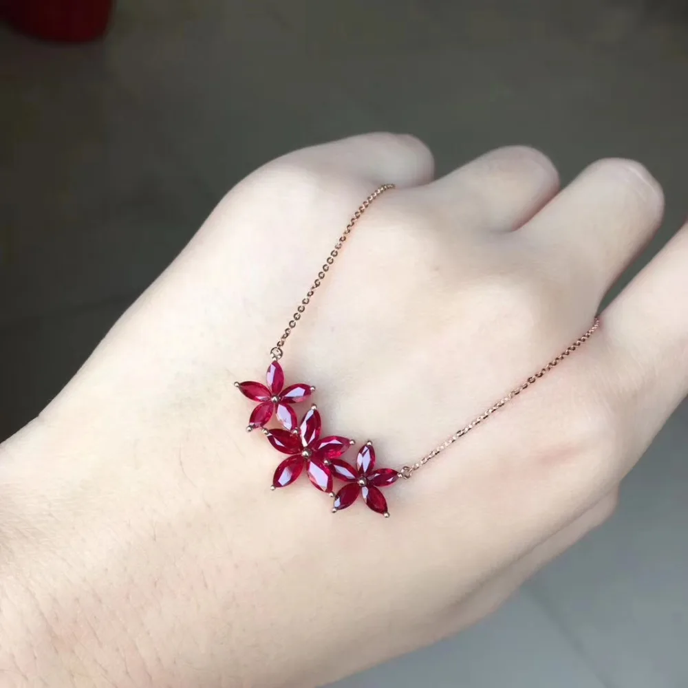 Product Name: الطبيعية الأحمر روبي جوهرة أنيقة الزهور قلادة الطبيعية الأحجار الكريمة قلادة قلادة 925 الشظية النساء فتاة هدية مجوهرات الزفاف